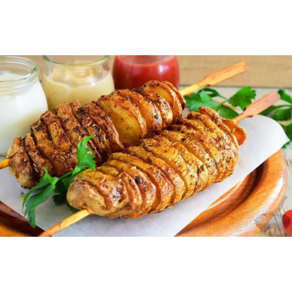 Нарезка картофеля спиралью осуществляется на шампур специальным ножом кольцевидной формы. Толщина нарезки 2 мм, что является оптимальным для жарки во фритюре. Так же устройство имеет специальную вакуумную присоску в нижней части для прочного крепления к столу.