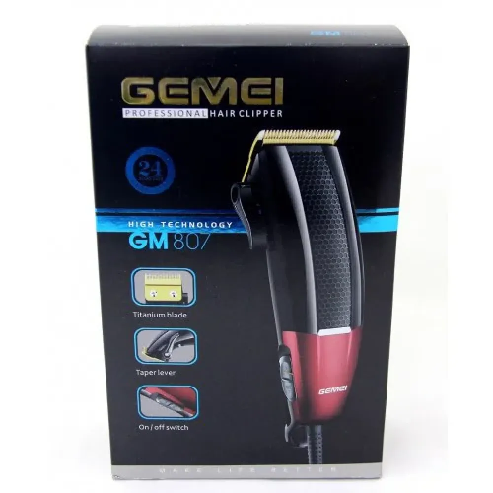 Машинка для стрижки Gemei GM 807 – професcиональная сетевая машинка для стрижки, которая подойдет как для домашнего использования, так и для салона или BarberShop. Имеет 4 насадки по 3мм, 6мм, 9мм, 12мм, мощный мотор и классический дизайн. На корпусе реализована система регулировки мощности мотора.