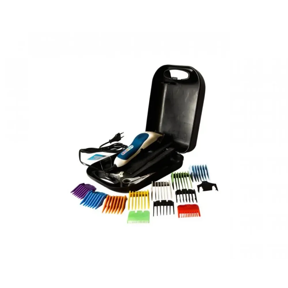 В комплекте с машинкой идет набор из 12 насадок, 2-х расчесок, ножниц и компактного и прочного кейса, где вы сможете все это расположить.