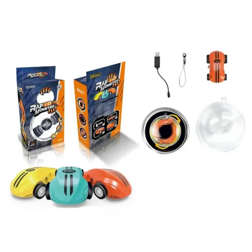 В наличии оранжевая, голубая и жёлтая машинка. В комплект входит USB зарядка, шнурок для брелока, пластиковый разборный шар.