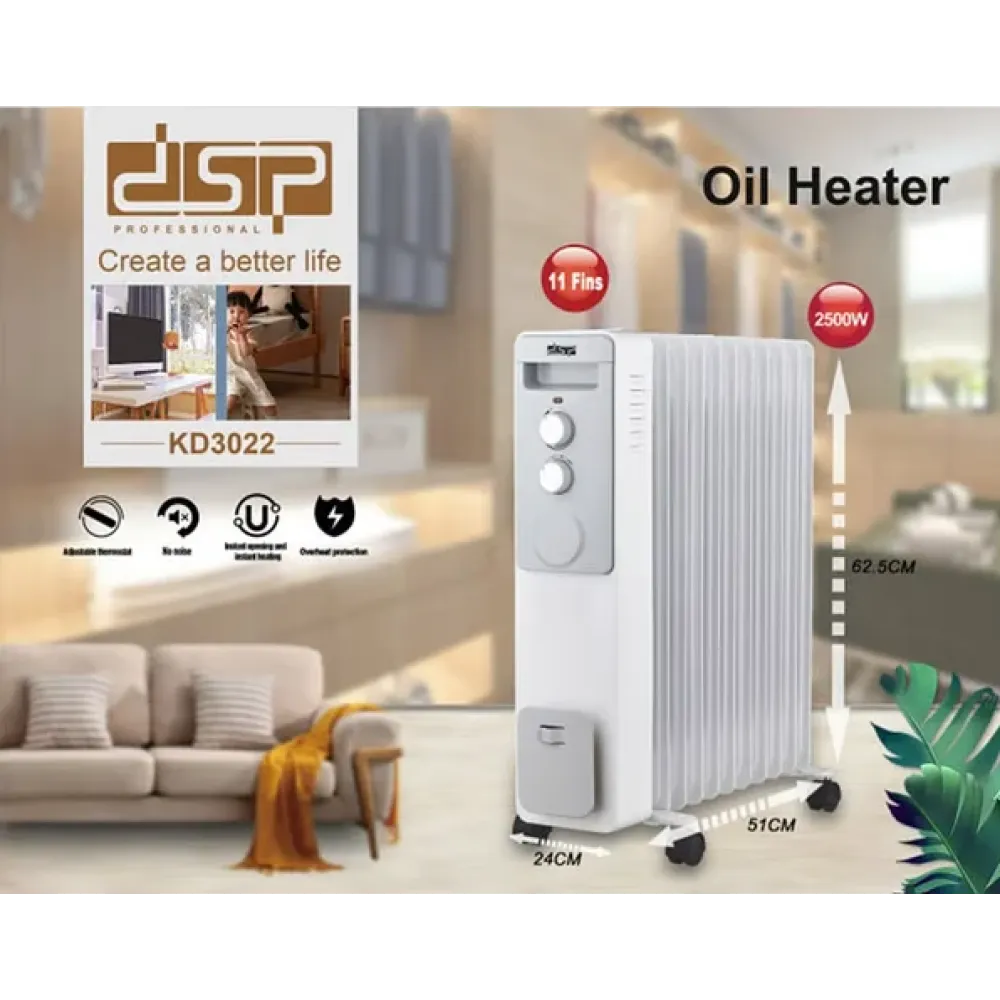 Масляный радиаторный обогреватель DSP KD3022 ∙ Портативная передвижная батарея для дома, 2500 Вт