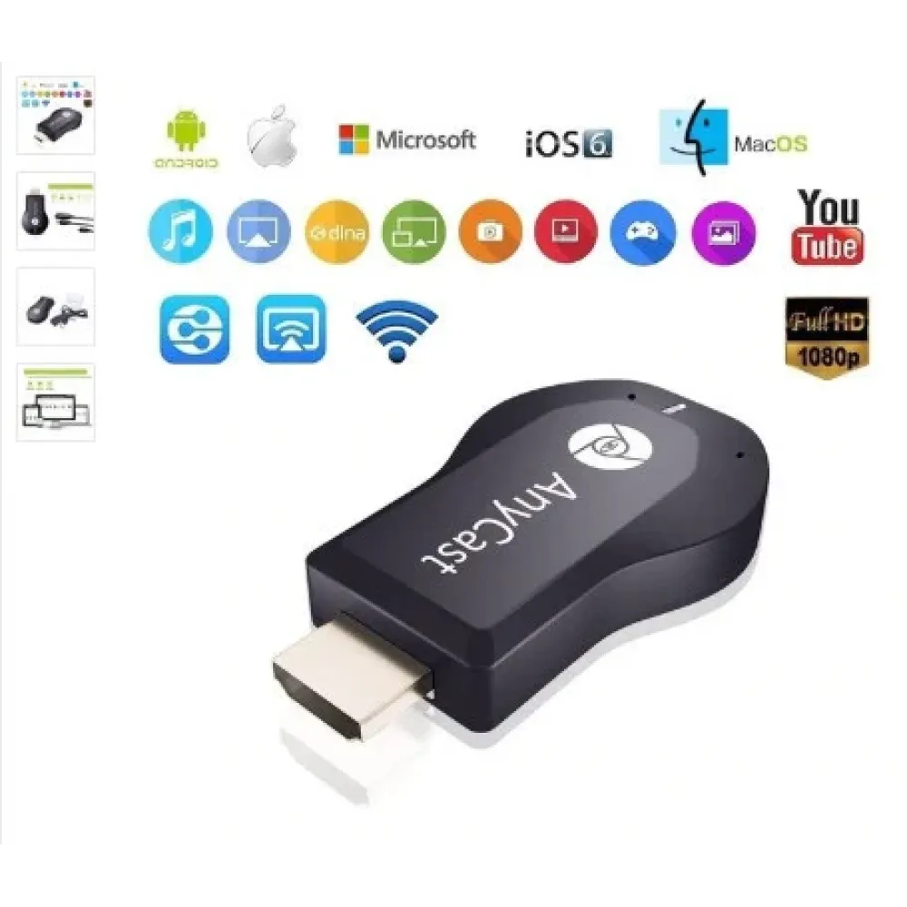 Современные мобильные устройства поддерживают вывод широкоформатного изображения повышенного качества на экраны мониторов и телевизоров посредством кабеля Hdmi. А не так давно была разработана технология, позволяющая использовать радиоканал Wi-Fi для беспроводной передачи цифрового видеопотока. Это позволяет существенно упростить подключение различных устройств друг к другу, одновременно сокращая количество мешающих проводов. Но что делать, если устройство вывода (плазменная панель, телевизор или просто монитор) имеет порт Hdmi, но не имеет модуля Wi-Fi или просто не способно принимать поток данных в формате Wi-FiDisplay? Особенно, если нет желания заморачиваться с переходниками и Hdmi кабелем? Ответ прост – обзавестись специализированным адаптером, таким как AnyCastM2 PlusDLNAMiracastAirPlayDongleWiFi.