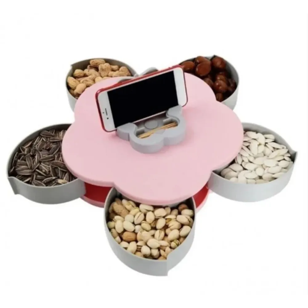 5 отделений, которые располагаются на удобной вращающейся платформе – просто раскройте лепестки и каждый сможет выбрать для себя самое вкусное лакомство.