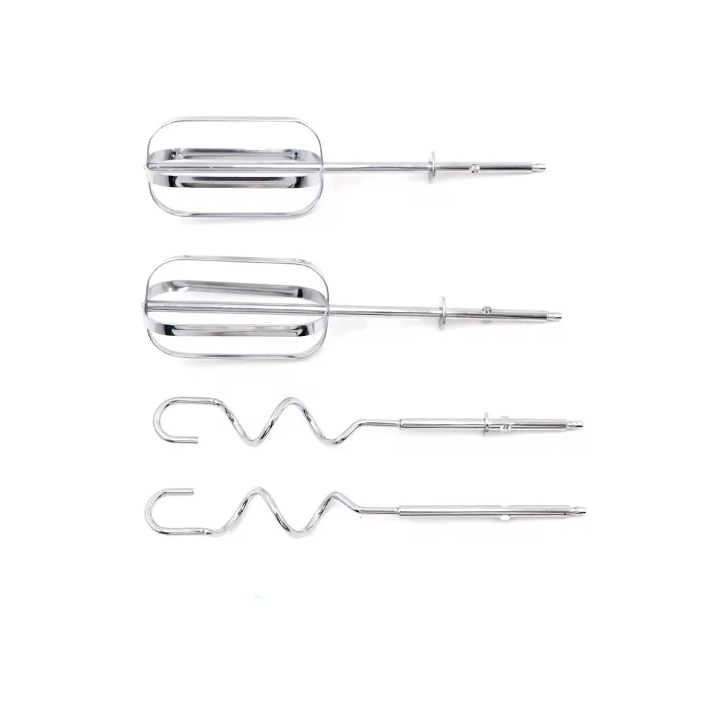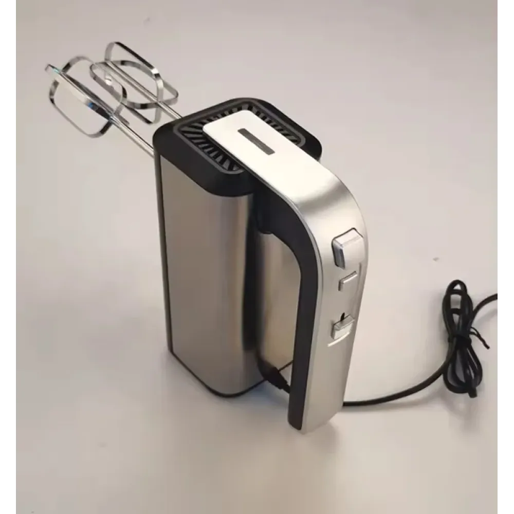 Этот миксер обладает мощностью 800 Вт и оснащен пятью скоростями, что позволяет регулировать интенсивность работы в зависимости от вида продуктов. Для особых задач предусмотрены режим "Турбо" и функция "Пульс", которые помогут ускорить процесс приготовления или деликатно обработать ингредиенты. Удобство использования обеспечивается кнопкой для отсоединения насадок, а нескользкие ножки гарантируют стабильность миксера на рабочей поверхности. В комплект входят базовый блок с эргономичной ручкой, венчики для взбивания, крючки для замешивания теста и чаша для измельчения.