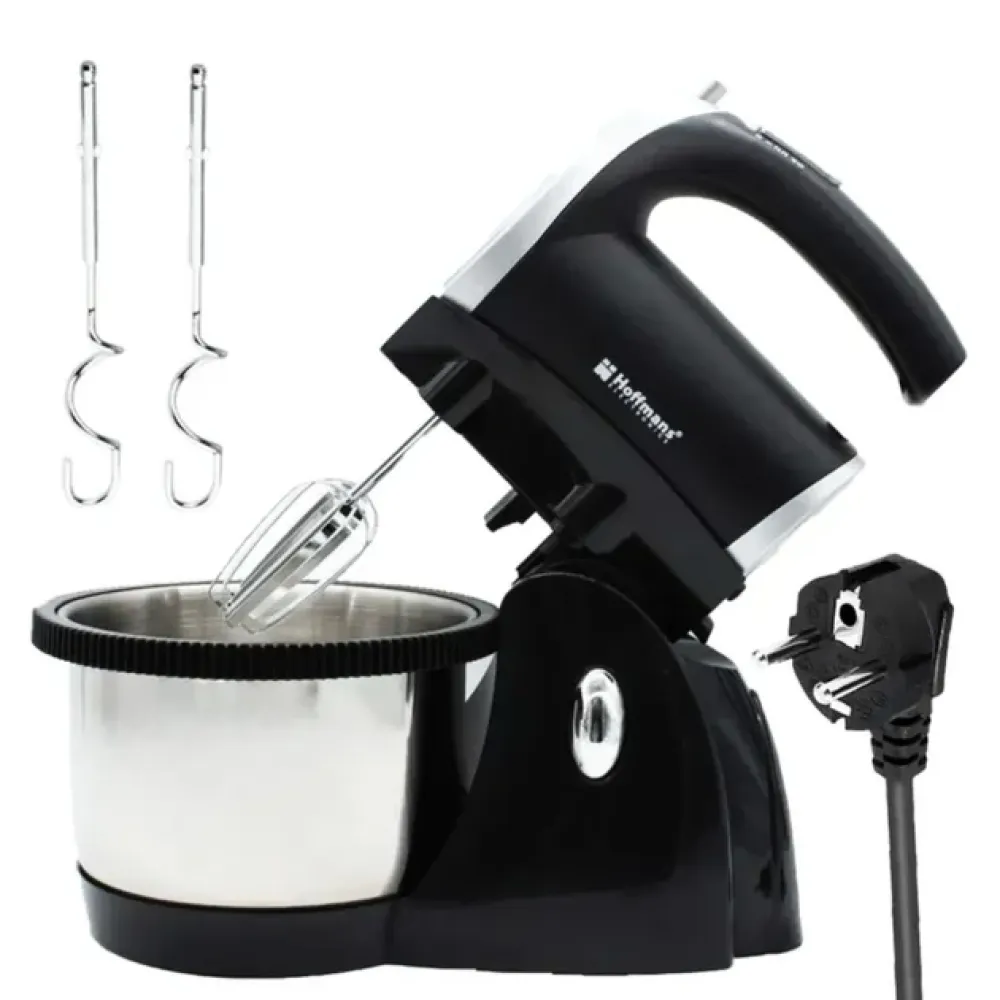 Кухонный миксер Hoffmans HM-6630 — это универсальный и мощный прибор для приготовления теста, кремов, соусов и других блюд. Он сочетает функции ручного и стационарного миксера благодаря подставке и вращающейся чаше, что делает процесс готовки удобным и быстрым.