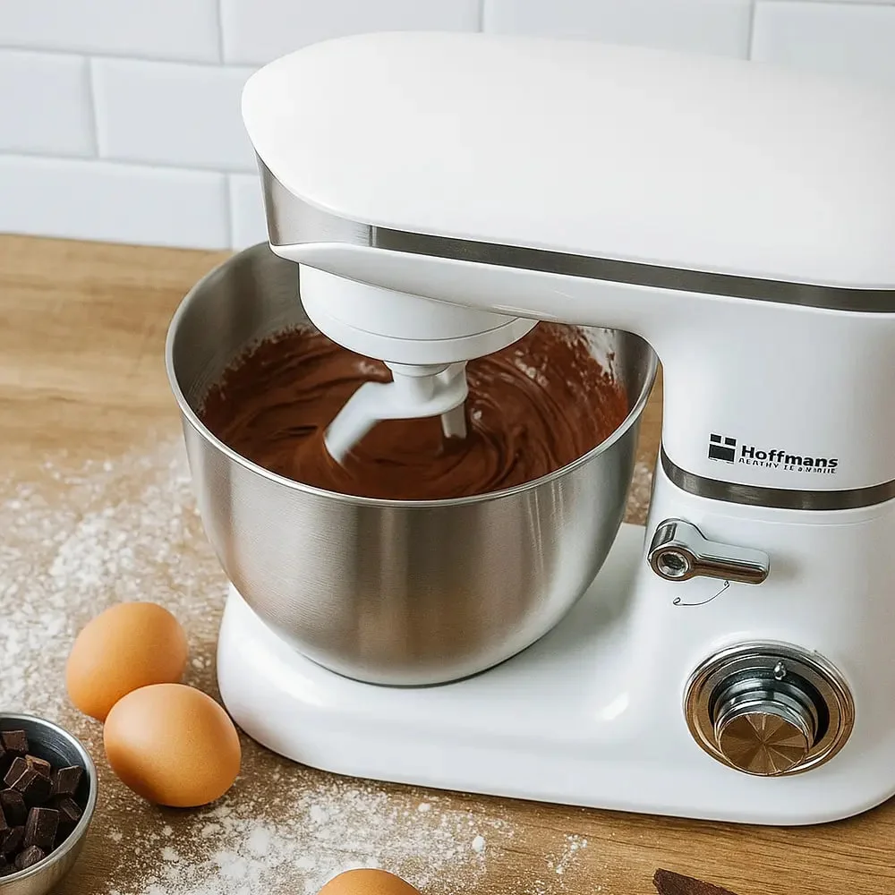 Стационарная конструкция и надежная подставка гарантируют устойчивость и безопасность даже при работе с большими объемами теста. Универсальные насадки позволяют замешивать тесто, взбивать кремы и смешивать ингредиенты различной плотности. Прочный корпус и современный дизайн делают миксер долговечным и стильным элементом кухни. Hoffmans HM-8080 подходит как для домашнего использования, так и для небольших кафе или кондитерских.