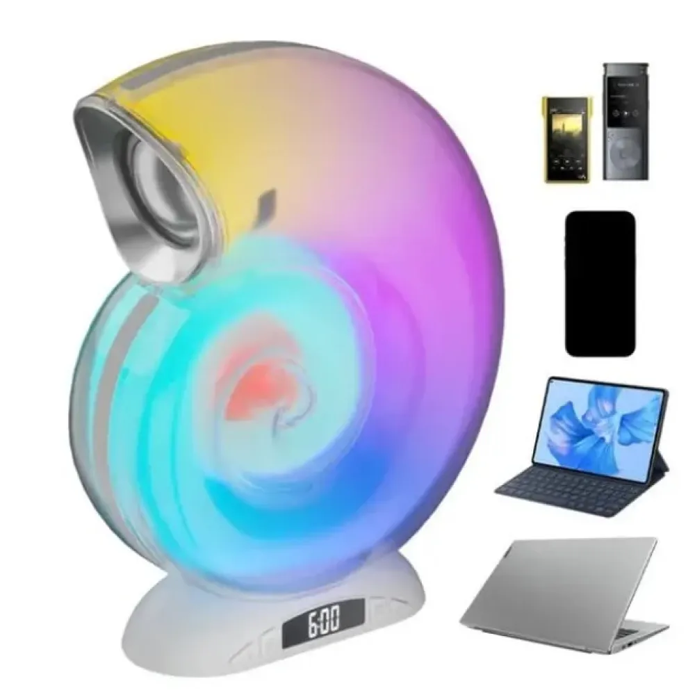 Устройство оснащено встроенными часами и поддержкой управления через мобильное приложение, что делает его не только стильным аксессуаром, но и удобным помощником в повседневной жизни. Компактная конструкция позволяет использовать колонку дома, на работе или в дороге.