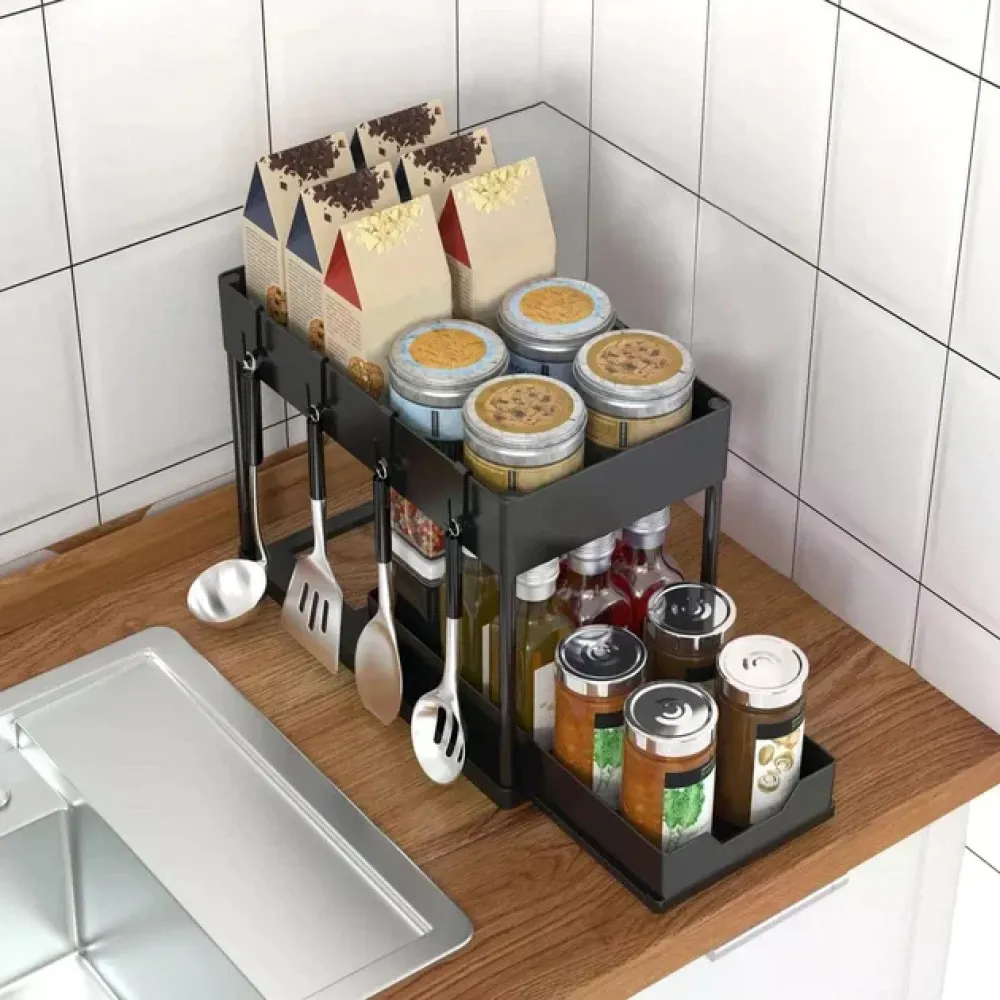Многофункциональный кухонный органайзер с выдвижным ящиком для хранения — это удобное решение для тех, кто хочет поддерживать порядок на кухне без лишних усилий. Такой органайзер помогает аккуратно разместить часто используемые мелочи, освободить рабочую поверхность и сделать пространство более организованным. Он отлично подходит для хранения специй, баночек, соусов, кухонных принадлежностей, пакетиков, салфеток и других нужных вещей, которые хочется всегда держать под рукой.