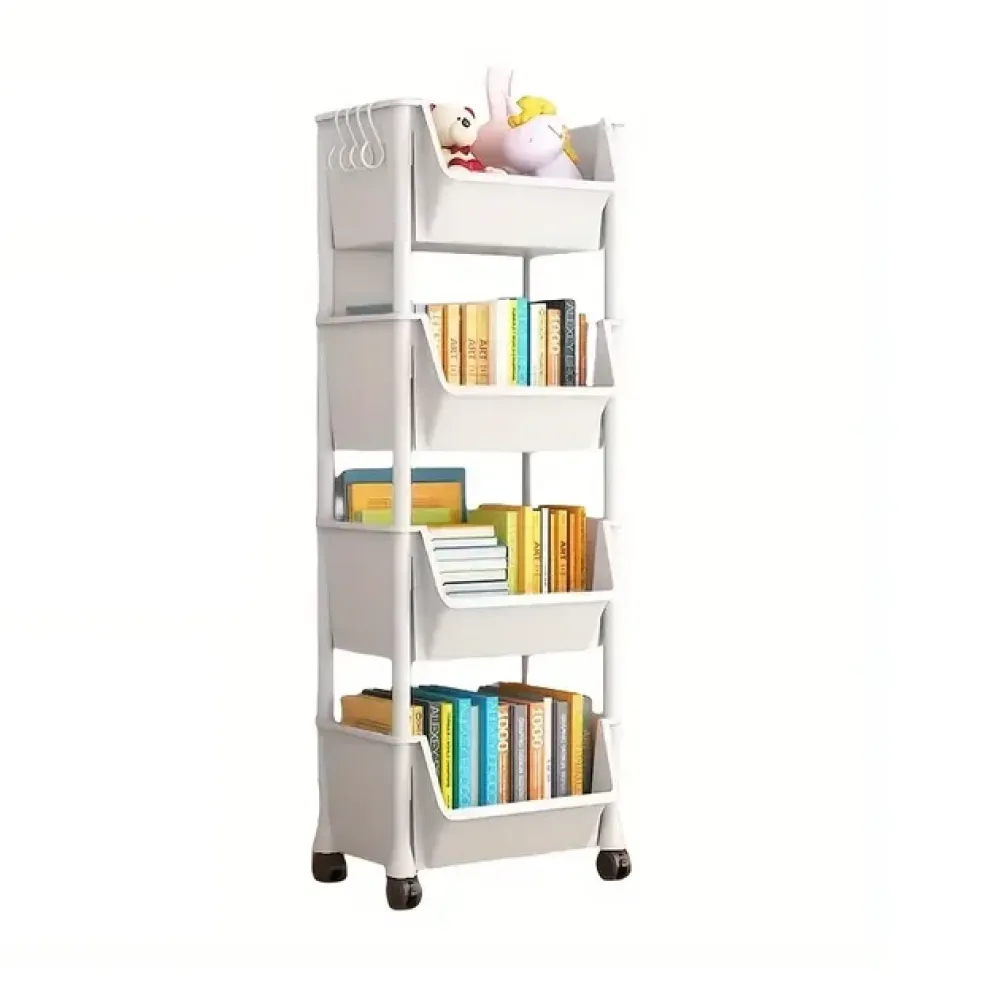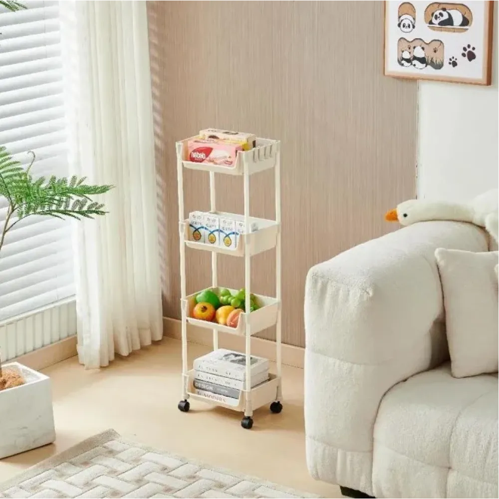 Эта этажерка — не просто полка для хранения, а продуманный до мелочей органайзер, который решает проблему беспорядка в любой зоне дома. Её узкая форма позволяет разместить её даже в самых компактных пространствах — между стиральной машиной и стеной, возле дивана, рядом с рабочим столом или в кухонном проходе. Колеса с функцией блокировки позволяют легко перемещать изделие при необходимости и при этом надёжно фиксировать его на месте. Благодаря своей универсальности, её можно использовать сначала как органайзер для детских игрушек, а затем — как систему хранения на балконе или кухне