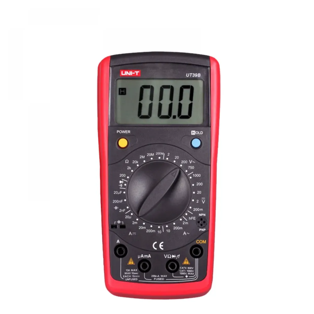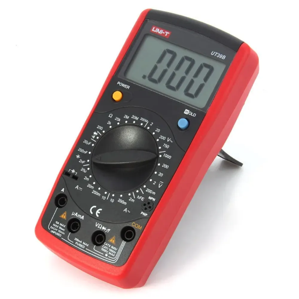 Мультиметр универсальный UT39В – довольно популярный прибор, который отличается надежностью и точностью. Любителей и профессионалов привлекает в нем, прежде всего, наличие всех базовых функций и широкий диапазон измерений. Мультиметр способен измерять переменное напряжение в диапазоне от 200 милливольт до 1000 вольт и постоянное – от 2 до 750 вольт, силу постоянного и переменного тока – от 20 микроампер до 10 ампер, сопротивление в пределах от 200 ом до 200 мегаом.