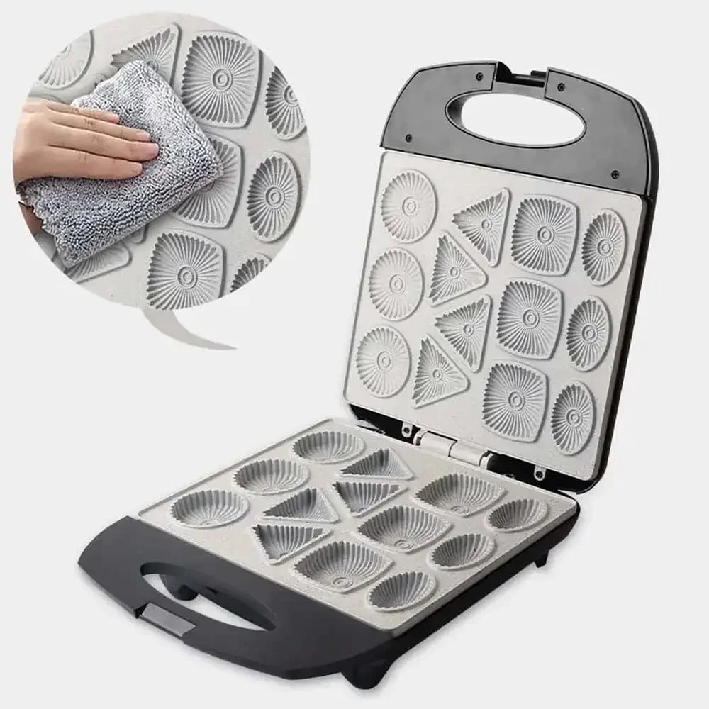 Прибор идеально подходит для семейных перекусов, праздничных столов и домашних чаепитий. Мощность 1400W обеспечивает быстрый разогрев и равномерное приготовление теста, а антипригарные панели позволяют легко извлекать готовое печенье без прилипания. Компактный корпус и термоизолированная ручка делают использование безопасным, а стильный современный дизайн гармонично вписывается в интерьер любой кухни.
