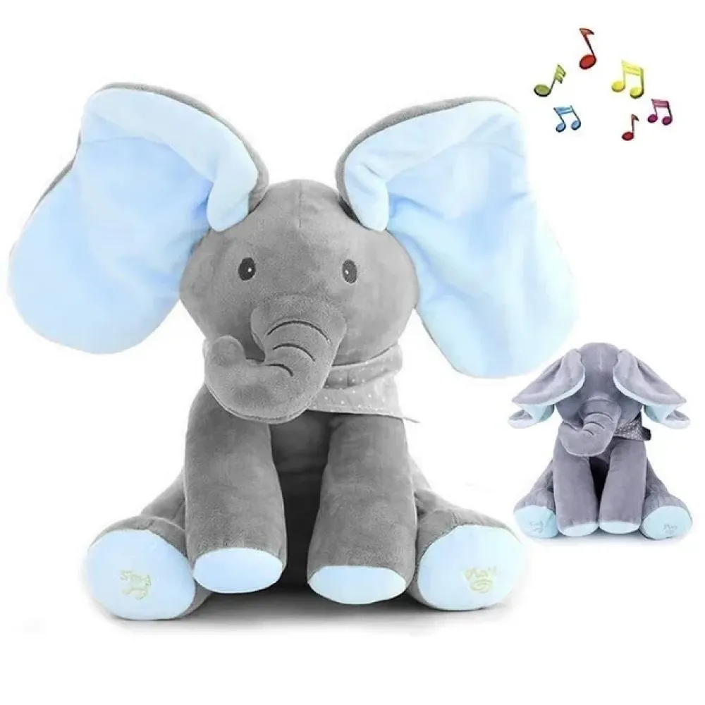 Мягкая музыкальная игрушка слонёнок с музыкой и движущимися ушками • Плюшевый слоник ORG