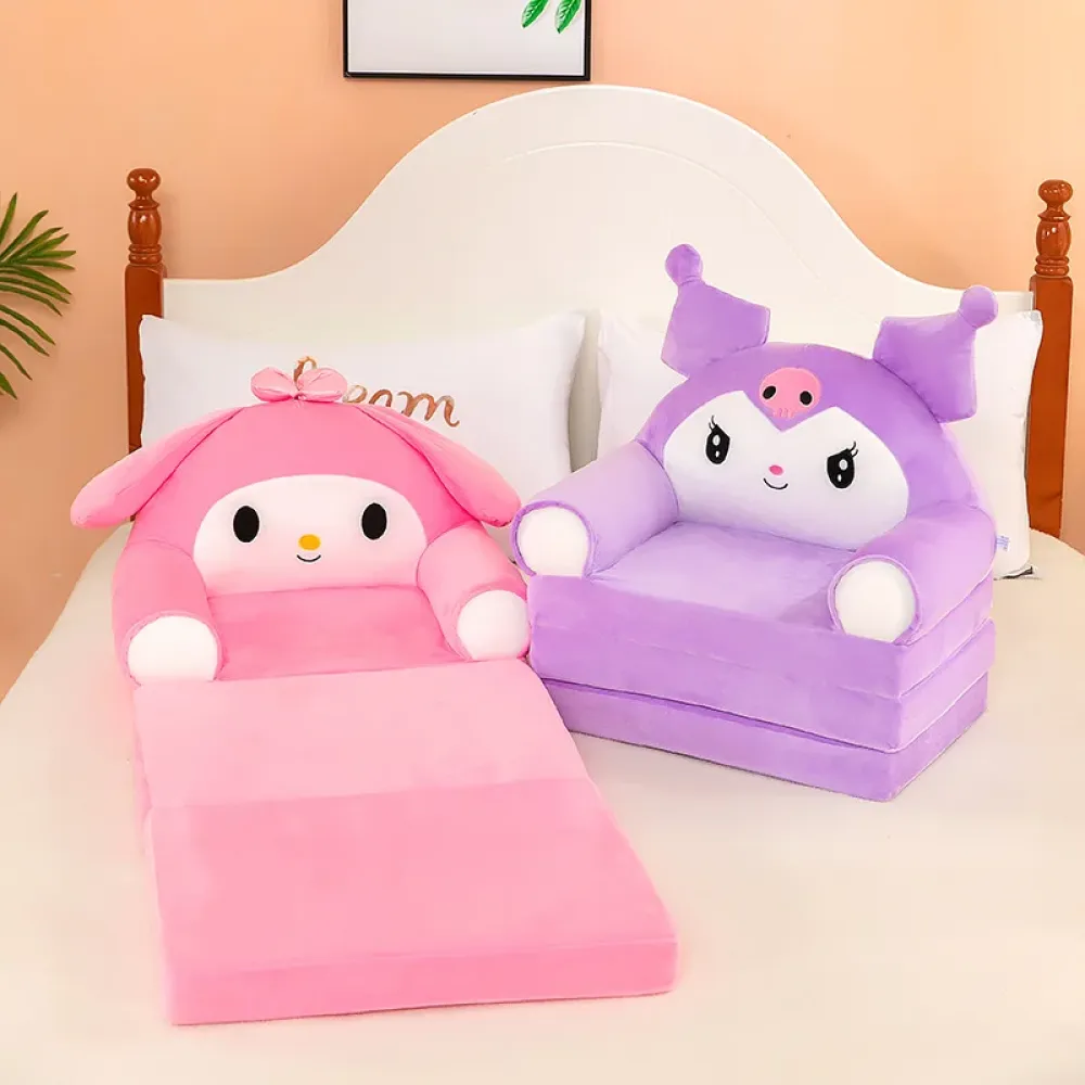 Подарите вашему ребенку комфорт и радость с плюшевым креслом-трансформером Kuromi! Этот стильный аксессуар объединяет функции кресла, матраса и декоративного элемента для детской комнаты. Удобное и безопасное, оно подходит даже для самых маленьких.