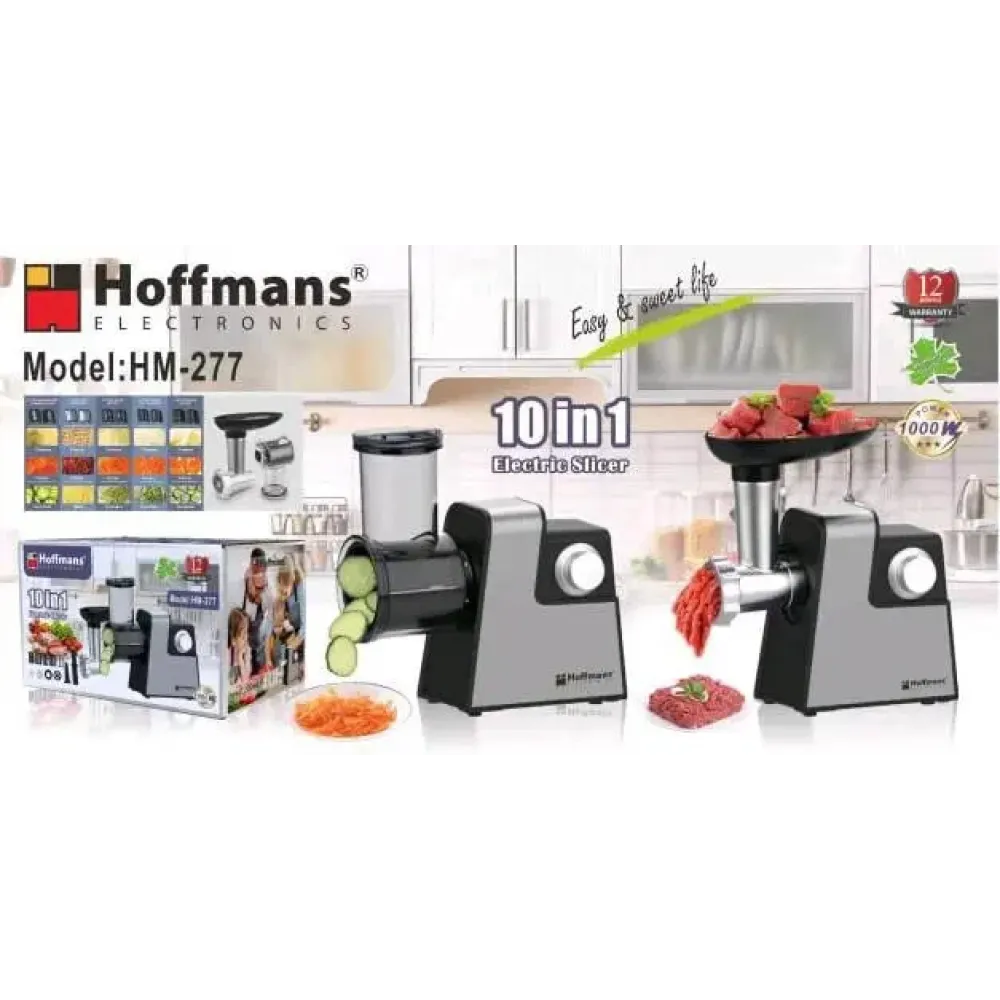 Мясорубка электрическая Hoffmans HM-277 • Электромясорубка 1000Вт + Овощерезка + 7 насадок от сети