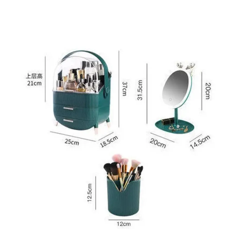 Набор для макияжа 3 в 1 · LED зеркало / Органайзер для косметики / Стакан для кисточек идеально подойдет для компактного хранения косметических средств. Зеркало с подсветкой облегчит нанесение макияжа. Удобный стакан для хранения кистей.