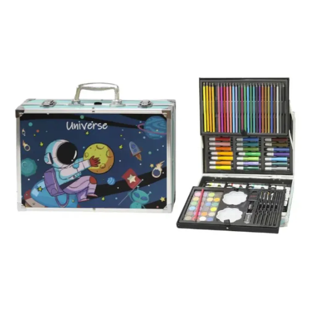 Набор для рисования "Астронавт" в синем кейсе — это идеальный выбор для вашего маленького художника! Внутри чемодана находится 145 предмета для создания настоящих шедевров: от масляных и акварельных красок до цветных карандашей и пастели. Такой комплект поможет развить фантазию, воображение и художественные навыки ребёнка. Удобный и красивый чемоданчик с ручкой и надёжными защёлками позволит легко переносить набор в школу, на кружки или в поездки. Набор подходит для детей любого возраста, даря им радость творчества и вдохновение на каждый день.
