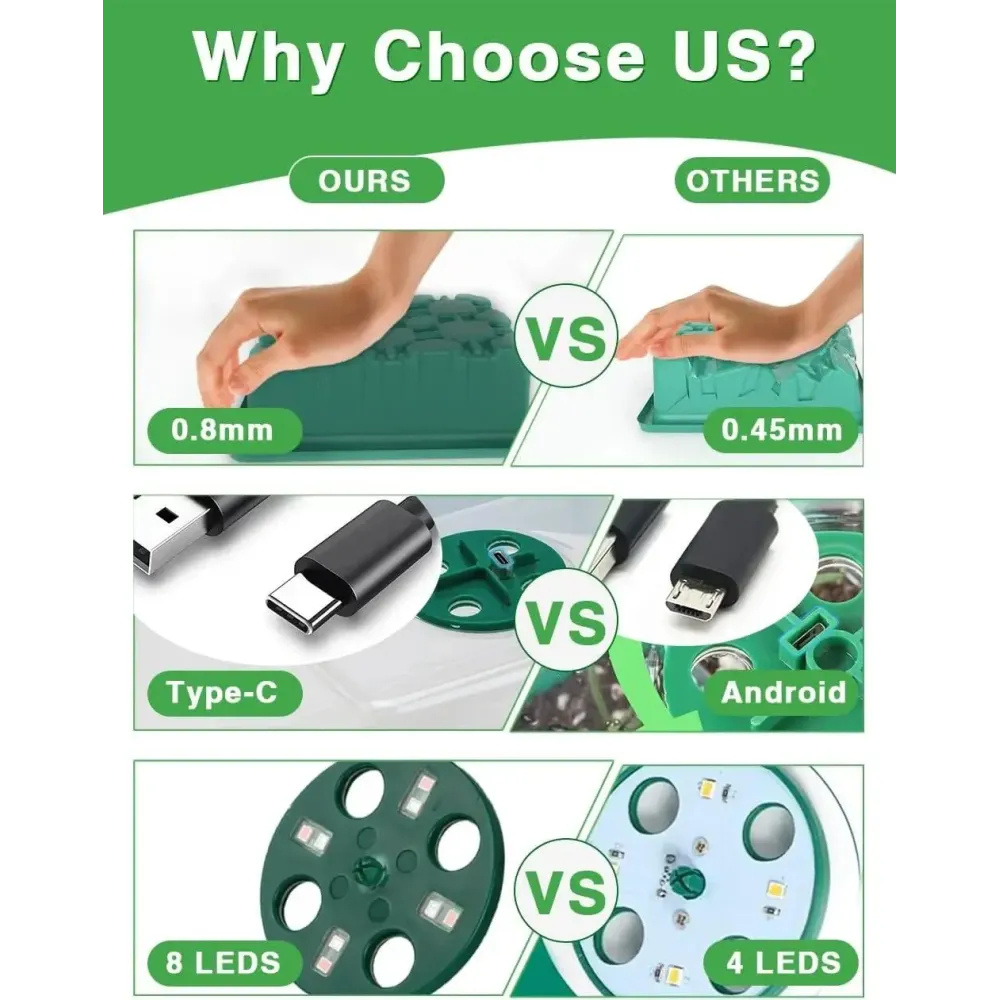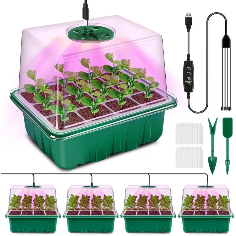 Современный комплект для садоводов и любителей домашних растений. Мини-теплички с прозрачными крышками создают оптимальный микроклимат для проращивания семян, обеспечивая правильную температуру и влажность. Встроенная LED-подсветка даёт необходимый уровень света, стимулируя рост растений даже в тёмное время суток и обеспечивая здоровое развитие рассады.