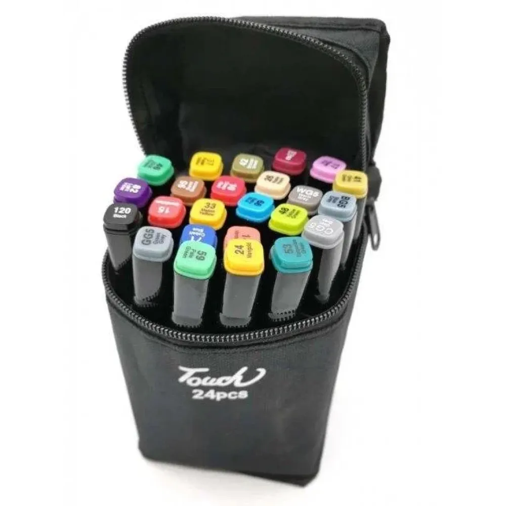 Маркеры для рисования и скетчей в черном тканевом футляре. Двусторонние, на спиртовой основе.