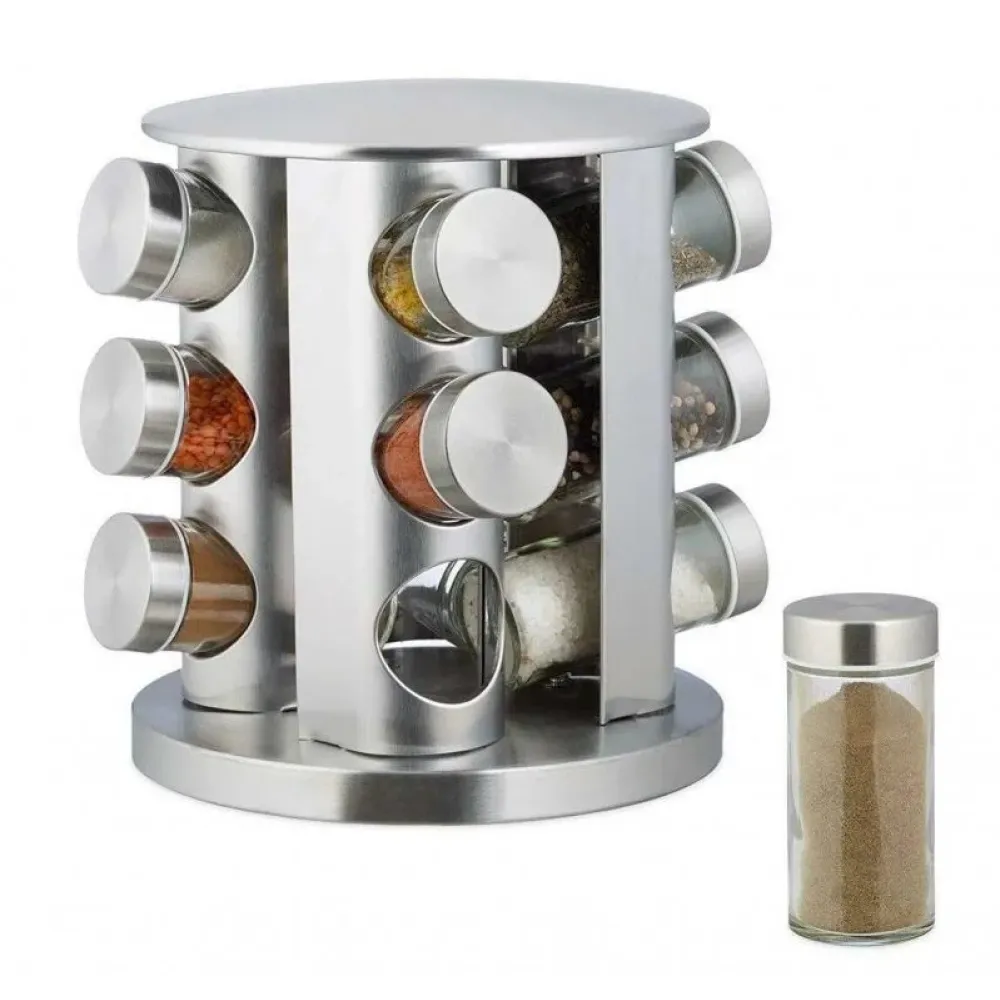 Набор емкостей - карусель для специй спецовница на подставке Spice Carousel ∙ 12 стеклянных баночек ∙ Нержавеющая сталь – это отличный выбор для тех, ктоценит вкус блюд, качество материалов и порядок во время приготовлениякулинарных шедевров!
