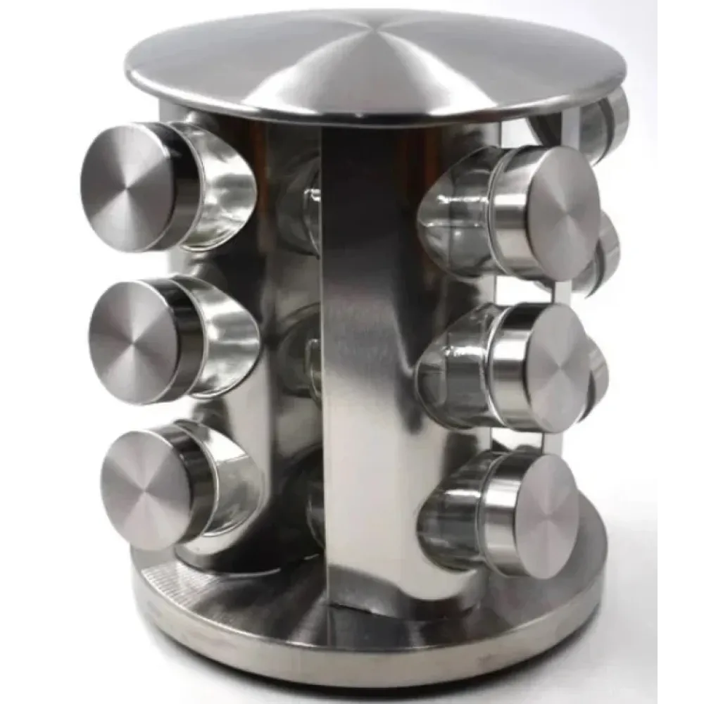 Набор емкостей - карусель для специй спецовница на подставке Spice Carousel  ∙ 12 стеклянных баночек ∙ Нержавеющая сталь – это отличный выбор для тех, ктоценит вкус блюд, качество материалов и порядок во время приготовлениякулинарных шедевров!