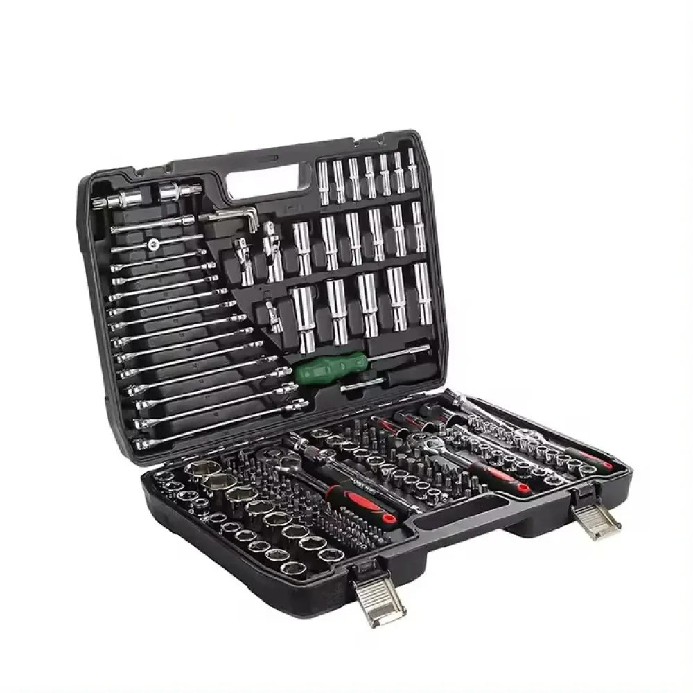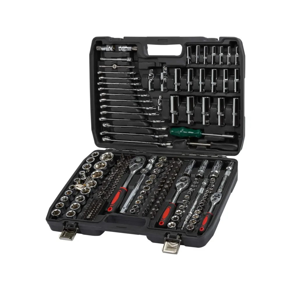 Профессиональный набор инструментов для автомобиля и дома, в чемодане 216 предметов. Универсальный набор инструментов поможет в решении задач ремонта и починки в доме, автомобиле и мототехнике. Выполнен из закаленной хромованадиевой стали, благодаря чему инструменты не гнутся и не разрушаются от коррозии. Кейс изготовлен из высококачественного пластика, что позволяет хранить набор на полке в квартире, гараже, багажнике и других удобных местах. Все инструменты плотно сидят на своих местах, что делает работу комфортной. Металлические застежки плотно фиксируют чемодан. Ящик с инструментами станет прекрасным подарком мужу, брату и отцу.