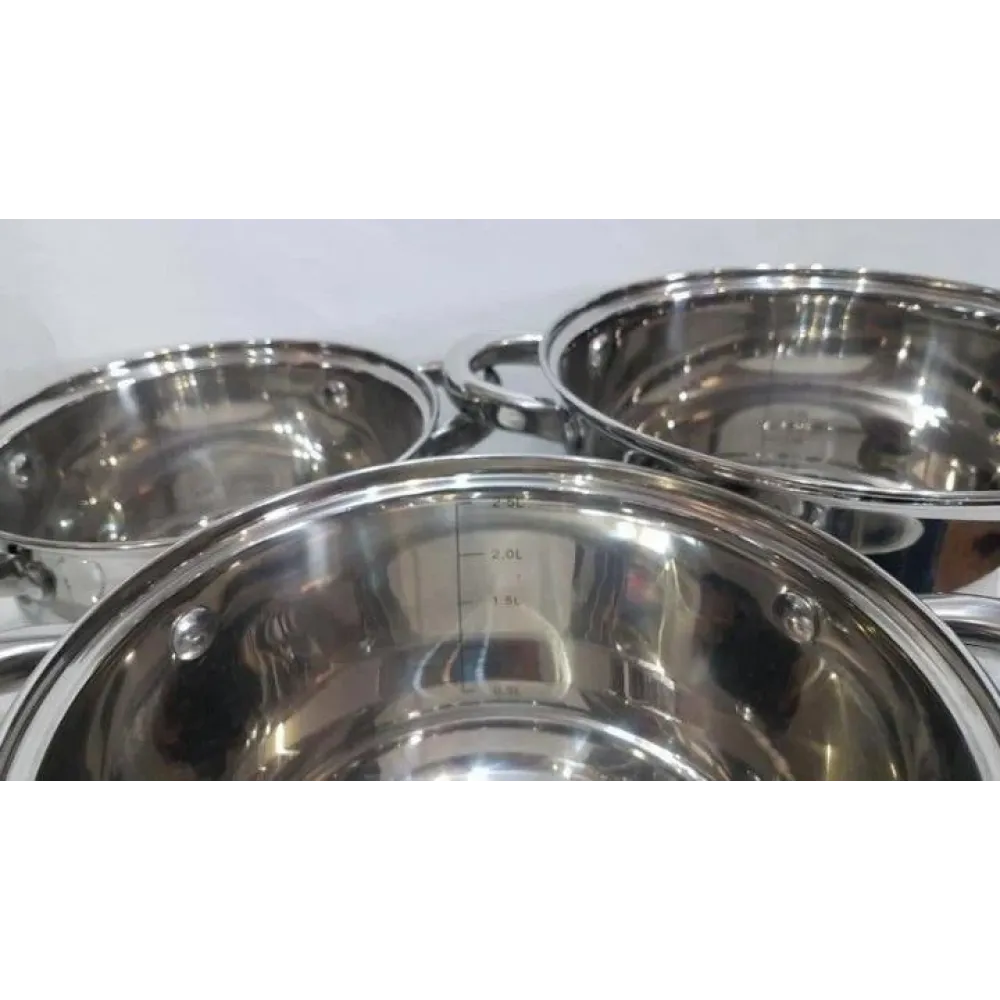 Набор кастрюль UNIQUE UN-5031 из 6 предметов станет незаменимым помощником на любой кухне. Изготовлен из высококачественной нержавеющей стали и оснащен 5-слойным термоаккумулирующим дном, которое обеспечивает быстрый и равномерный нагрев, сохраняет тепло и предотвращает пригорание пищи.