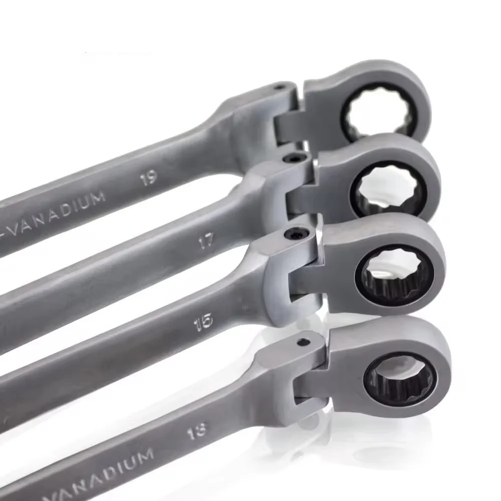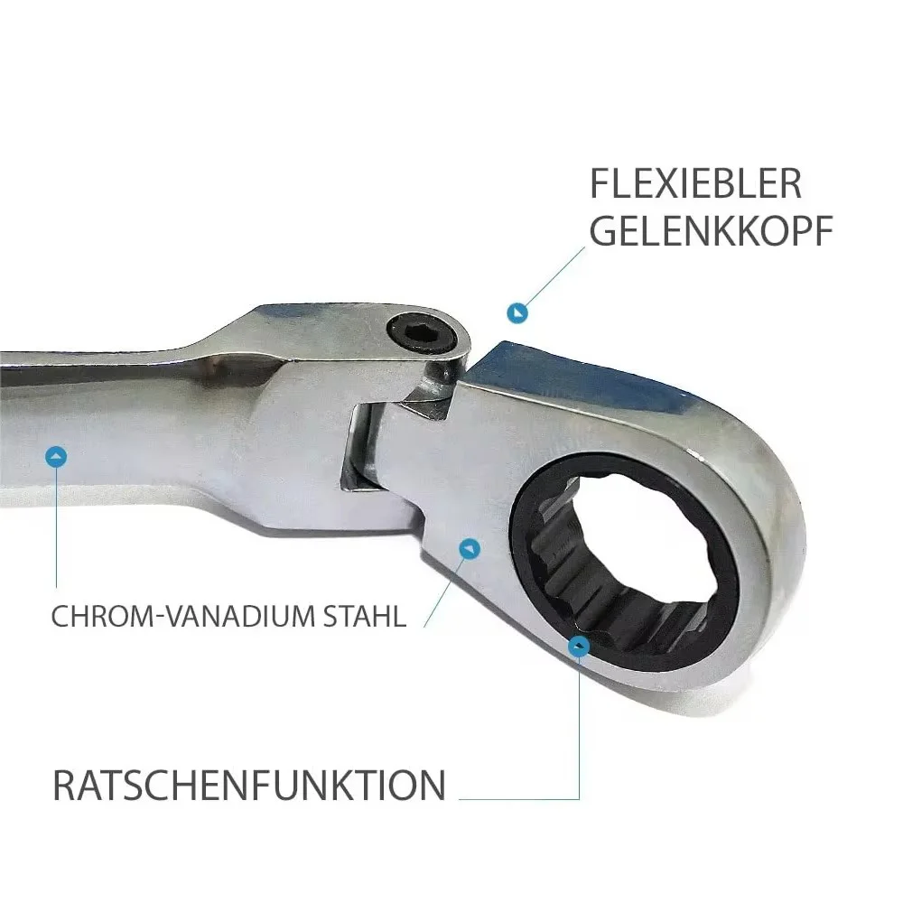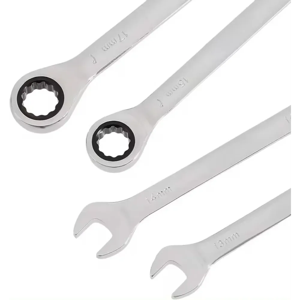 Ключи в наборе Wrench set ES-7 · Ключи комбинированные трещоточные шарнирные · Набор из 7 ключей