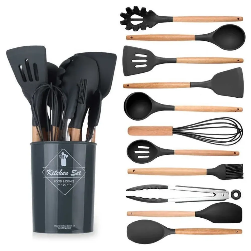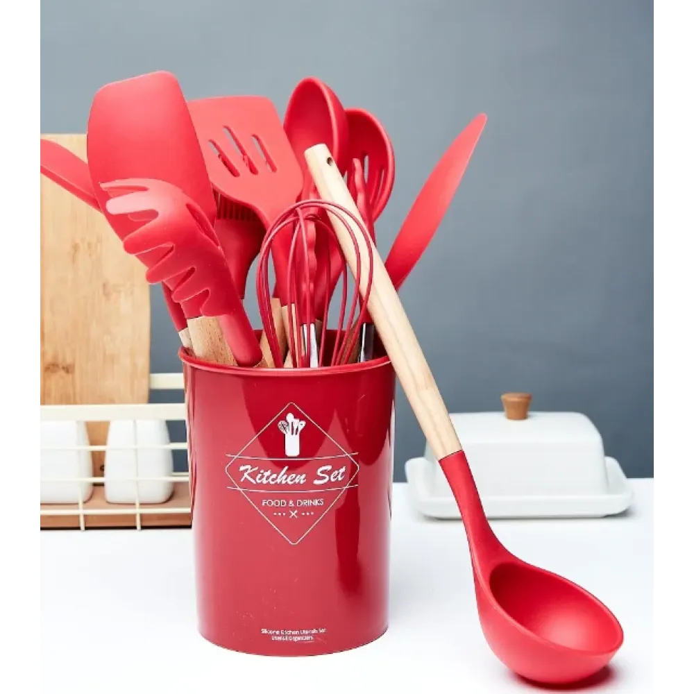 Набор кухонных принадлежностей Kitchen Set, 12 предметов ∙ Силиконовые аксессуары для кухни с подставкой