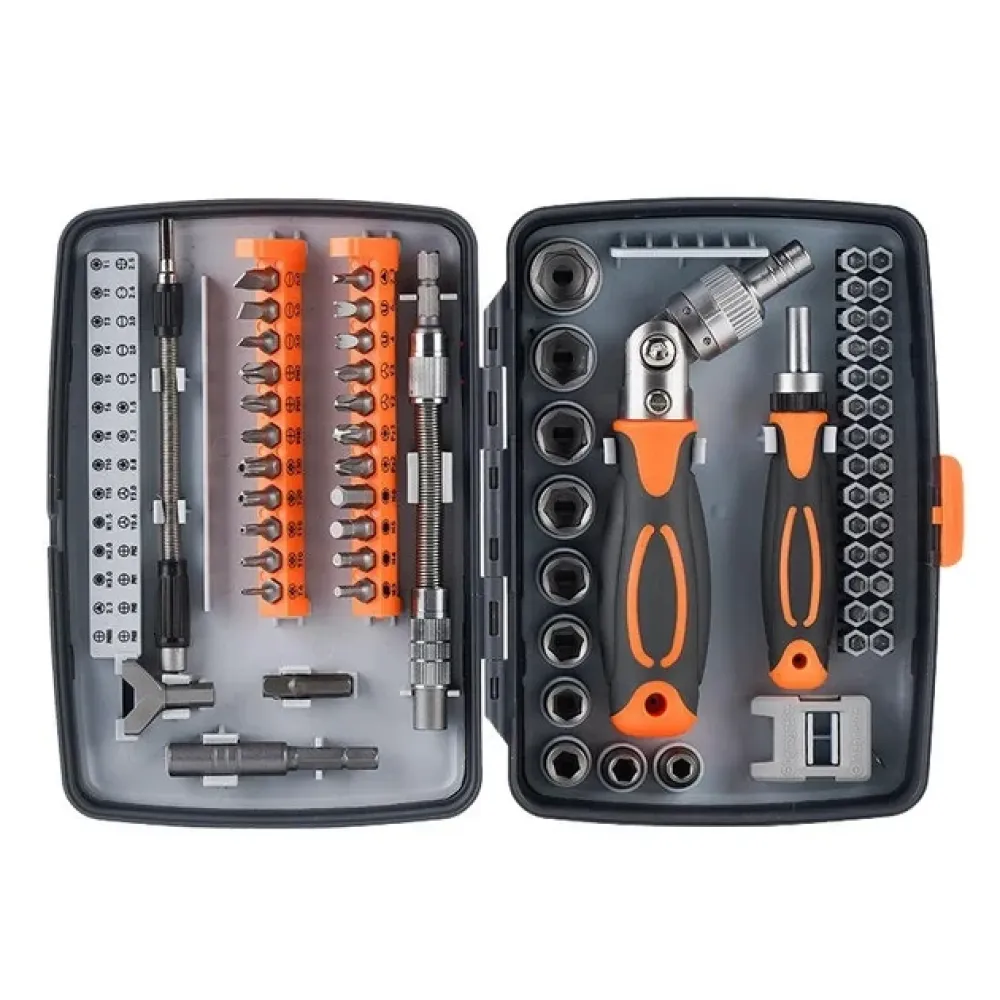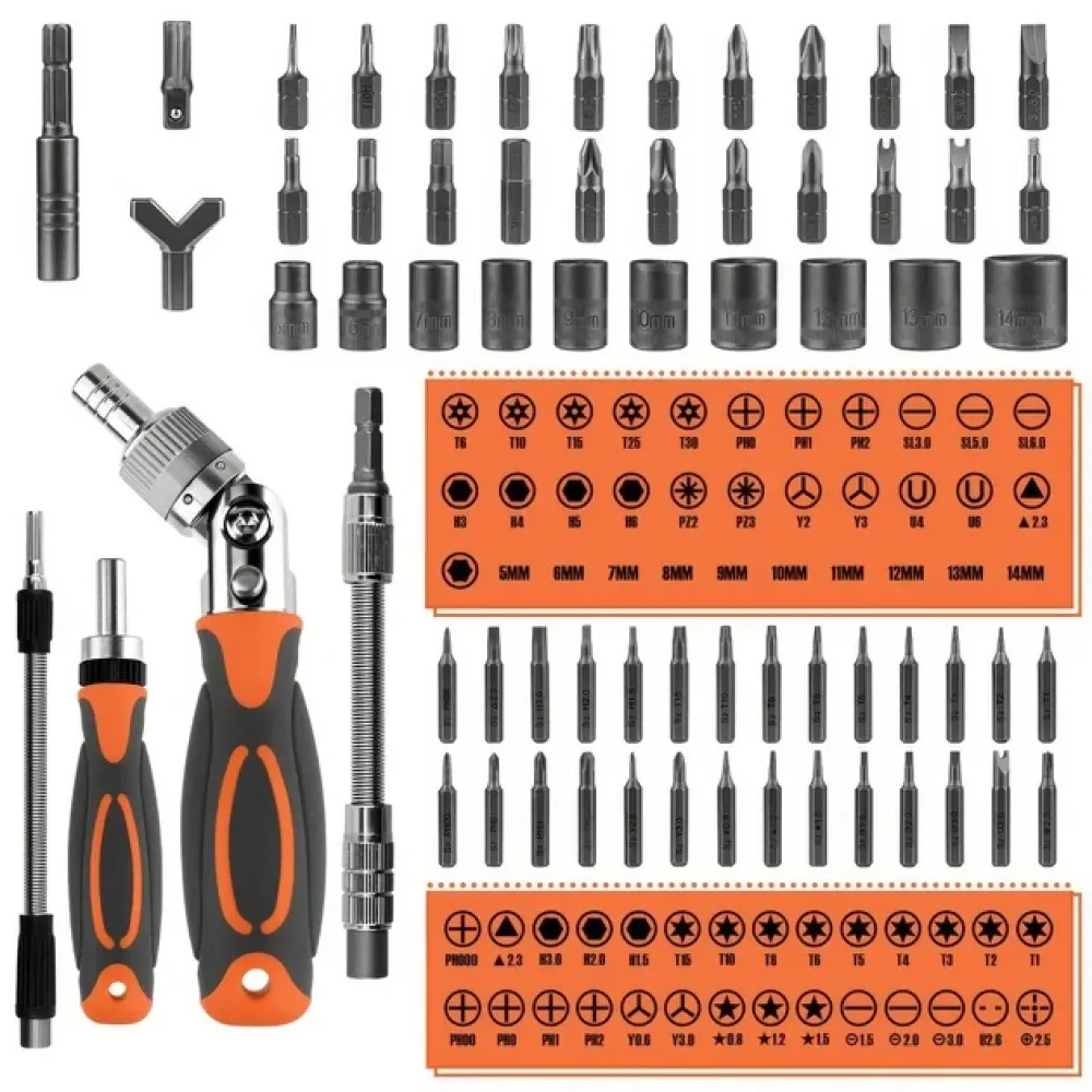 Набор отверток с трещоткой 68 в 1 Torx RATCHET — универсальный комплект инструментов, предназначенный для выполнения широкого спектра ремонтных и монтажных работ. В набор входит отвертка с трещоткой и 68 различных насадок, что позволяет работать с различными типами крепежа, включая Torx.