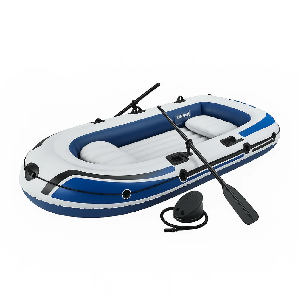 Полный комплект «всё включено» — насос, вёсла и подушка — позволяет использовать лодку сразу после покупки, без дополнительных затрат