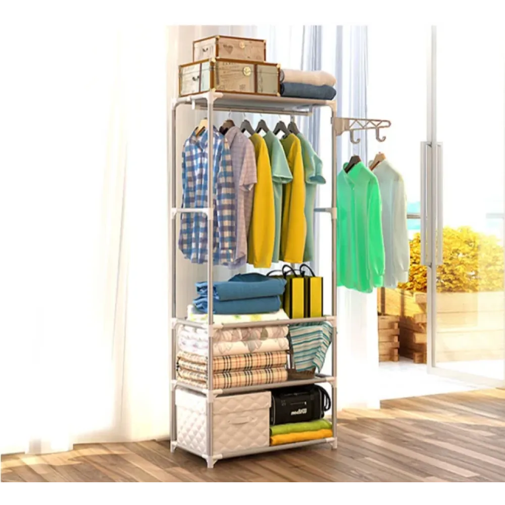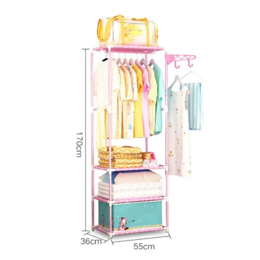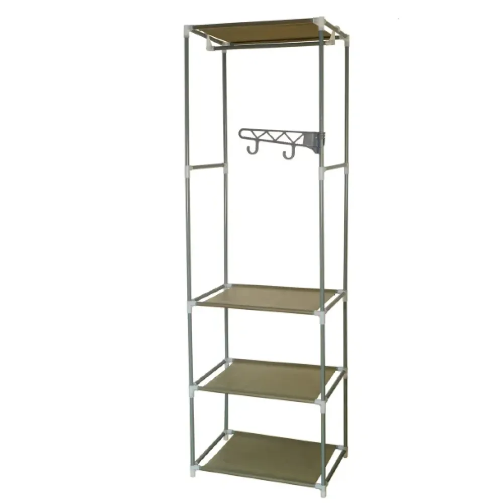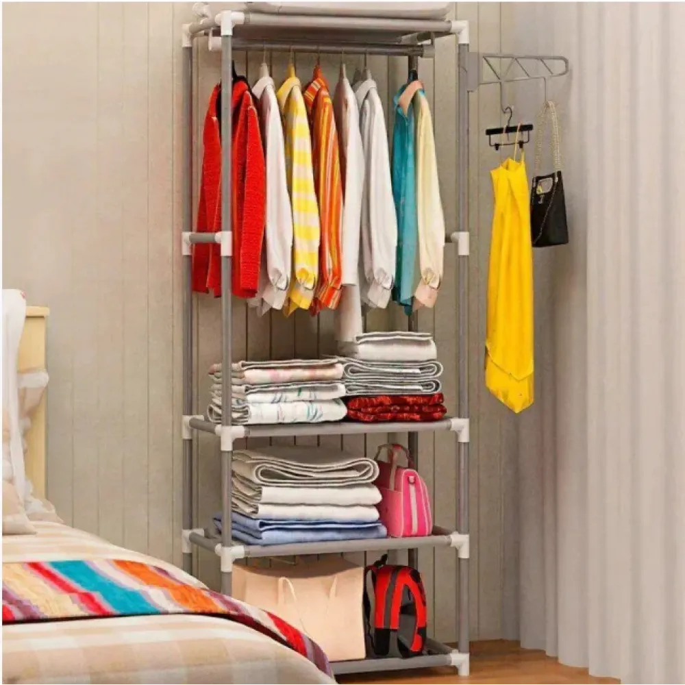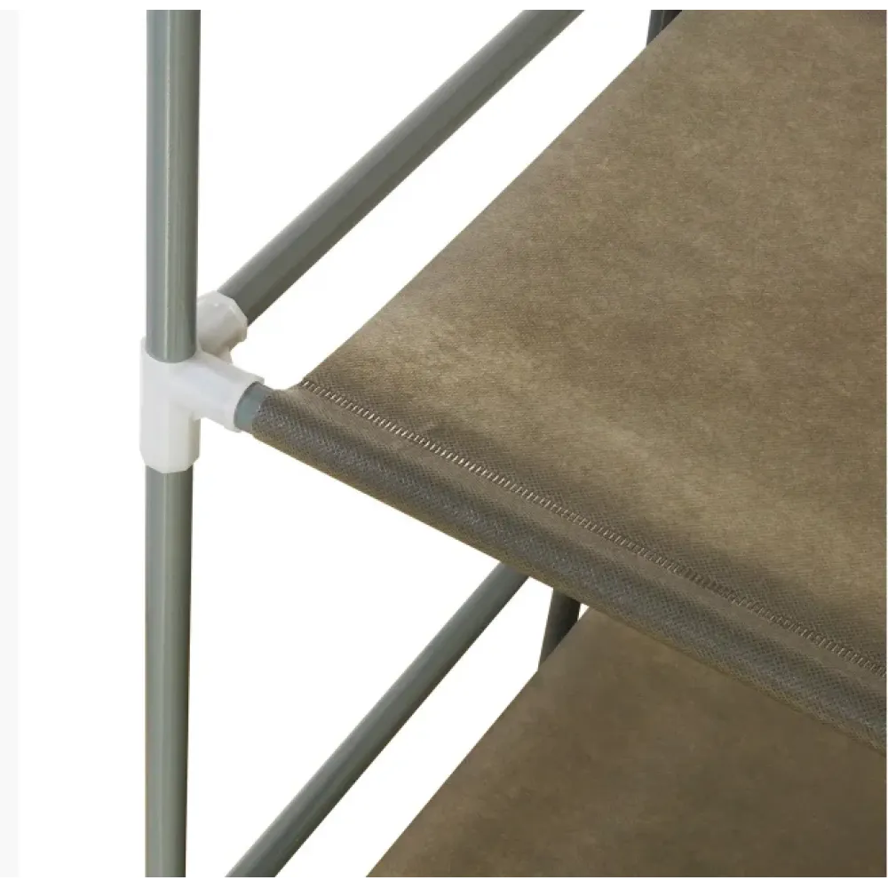 Этажерка для одежды очень устойчивая и прочная. Каркас выполнен из стальных трубок, полки из плотной оксфордской ткани. Очень вместительна и практична, имеет длительный срок службы.
