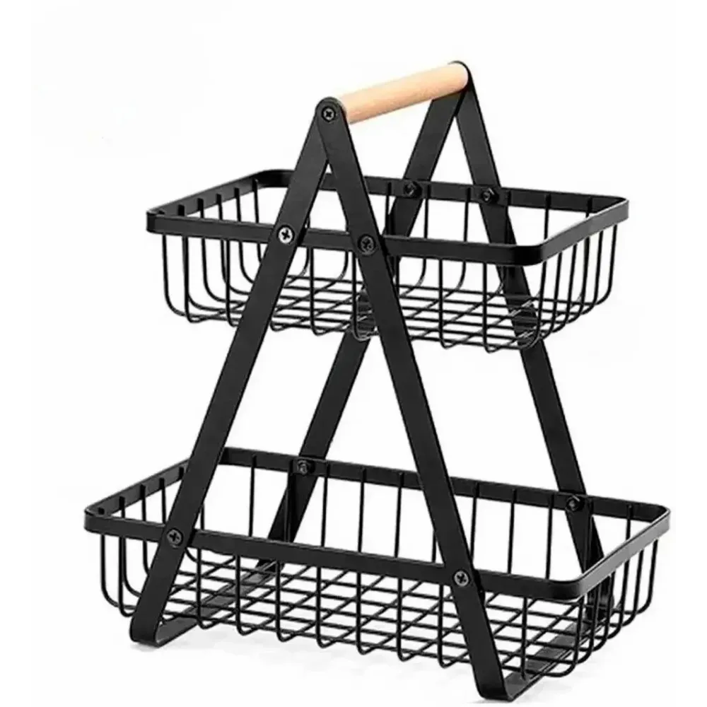 Портативная фруктовница с деревянной ручкой · Корзинка для фруктов · Разборная железная корзина для фруктов двухъярусная