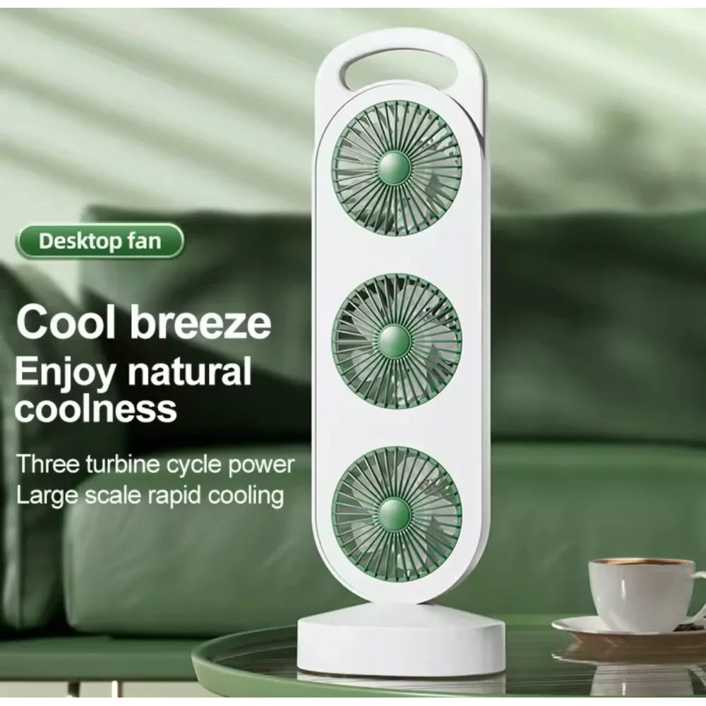 Настольный мини-вентилятор с тремя головками аккумулятором и зарядкой Type-C • Трёхголовочный вентилятор USB LY-856 / S-31