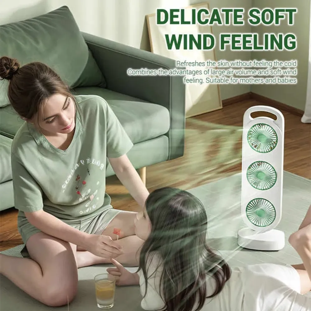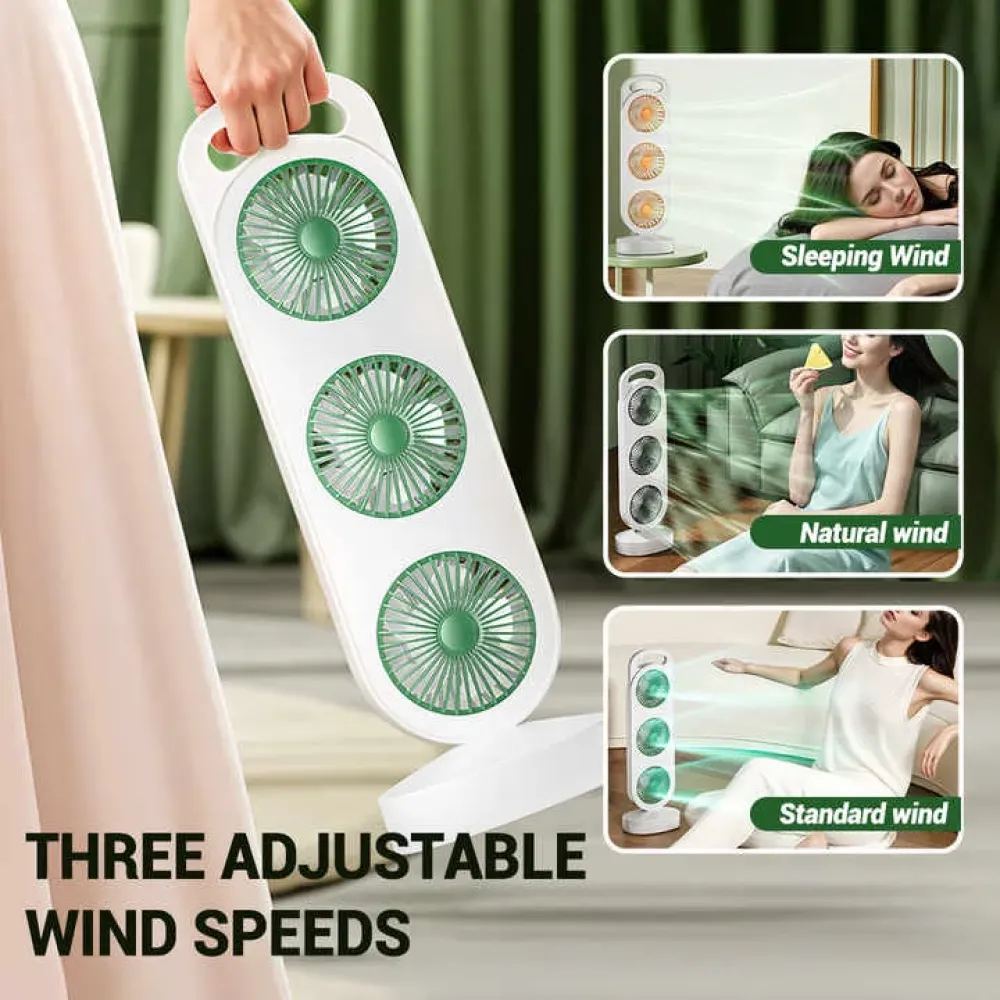 Нужна мощная и компактная система охлаждения для дома, офиса или автомобиля? Вентилятор AND LY-856 / S-31 с тремя поворотными головками создаёт эффект направленного обдува с разных сторон, обеспечивая равномерную циркуляцию воздуха даже в жару. Устройство работает от встроенного аккумулятора и заряжается через USB Type-C — просто подключите к ноутбуку, пауэрбанку или адаптеру