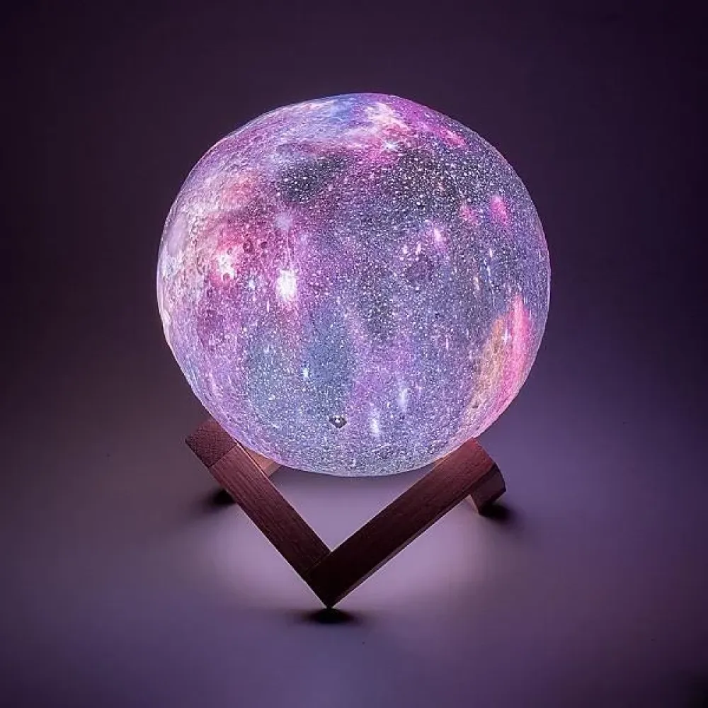 Лампа изготовлена с помощью инновационной технологии 3D-печати. Текстура корпуса имитирует реальный внешний вид кратеров на поверхности Луны и смотрится очень красиво.