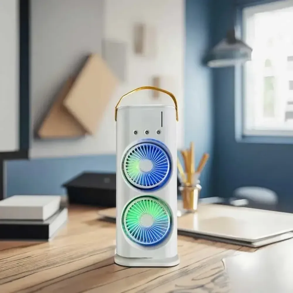 Ищете решение, чтобы пережить жару с комфортом? Представляем вентилятор - кондиционер 3 в 1, который одновременно охлаждает, увлажняет и создаёт атмосферное освещение. Устройство оснащено двумя независимыми вентиляторами с автоповоротом и регулируемым направлением обдува, а также мощной LED-подсветкой с семью цветами.