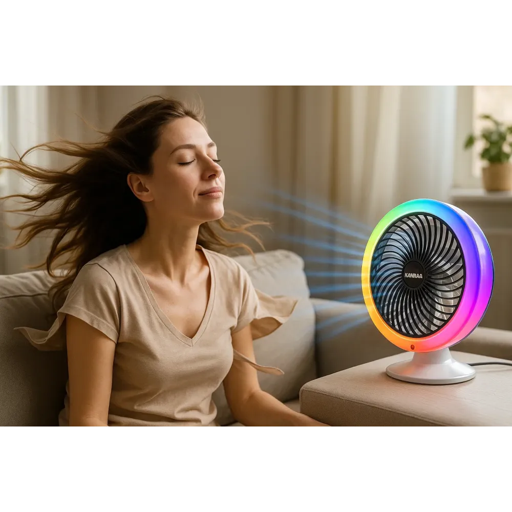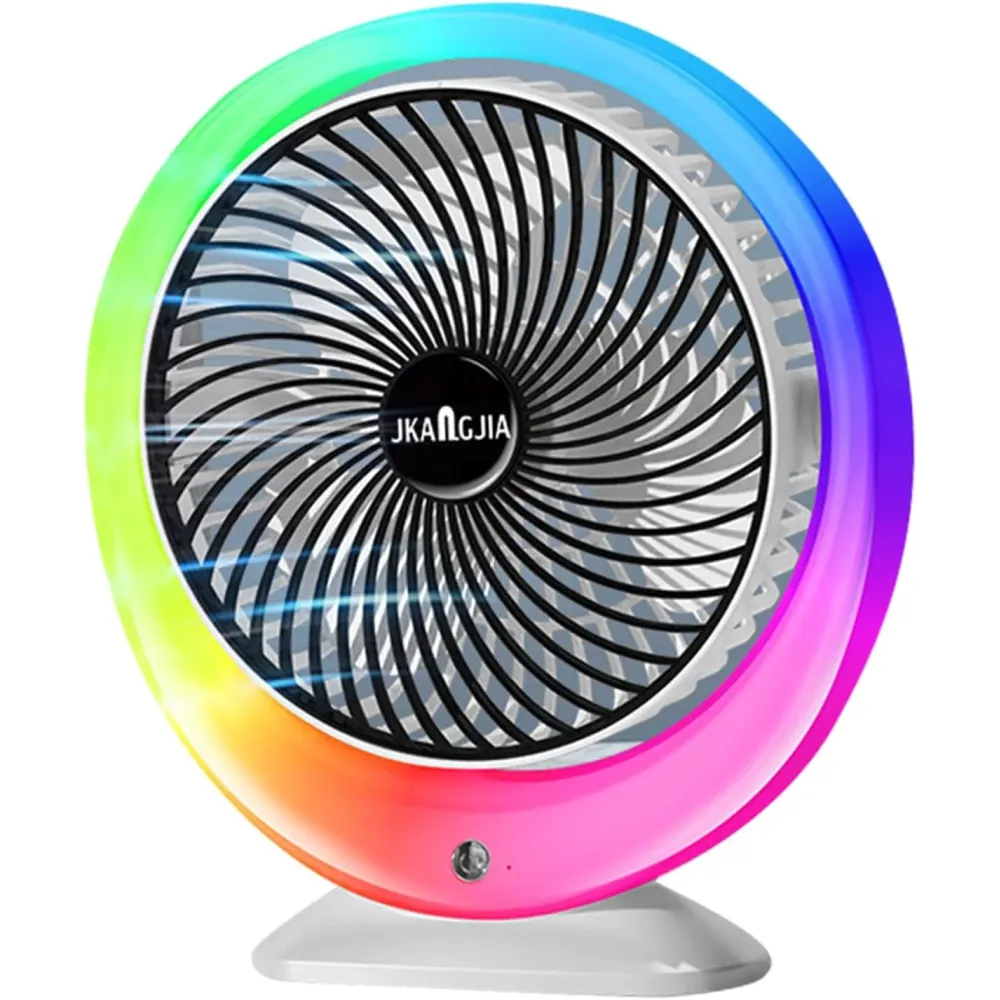 Устали от душного воздуха на рабочем месте или дома? Мини-вентилятор JKANGJIA — стильное и функциональное решение, которое подарит вам прохладу в любой момент. Благодаря встроенному аккумулятору на 1200 мАч он работает автономно, а Type-C зарядка обеспечивает быструю и стабильную подзарядку. Его современный дизайн с яркой RGB-подсветкой добавляет настроения и прекрасно вписывается в интерьер спальни, офиса или детской комнаты