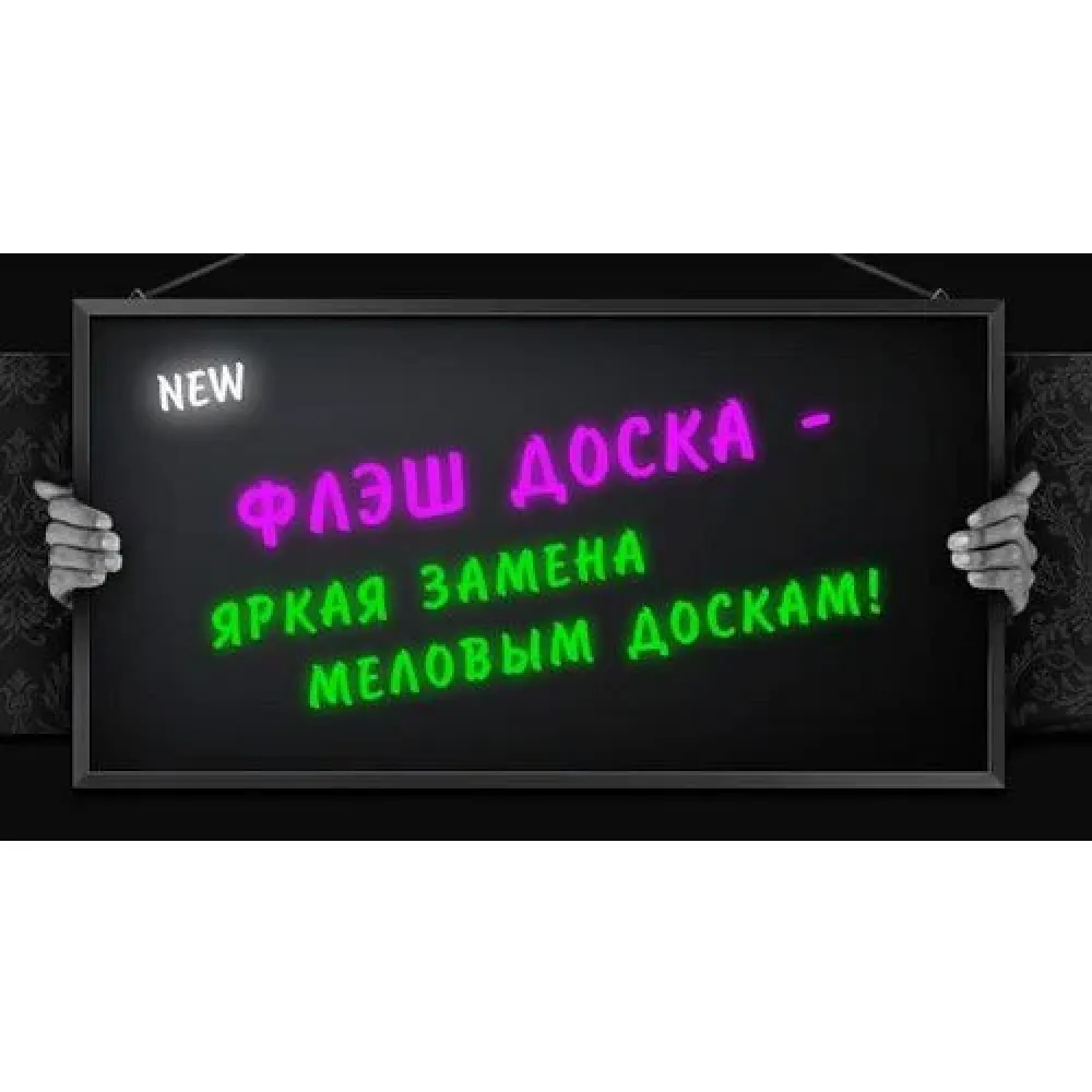 Неоновая панель, светящаяся рамка, Led Writing Board, SparkleBoard, AdFlashingBoard, доска для рекламы, светящаяся рамка, — это названия одного и того же рекламного продукта индивидуального пользования, стеклянная обрамленная в багет рамка с динамической светодиодной подсветкой. Флэш это светодиодная рекламная вывеска предназначенная для эффективного привлечения внимания посетителей и покупателей к важной информации, дизайн которой вы можете создавать самостоятельно меняя рисунок и текст рекламы в любой момент. Вы просто стираете старую рекламу и наносите новую специальными цветными маркерами.