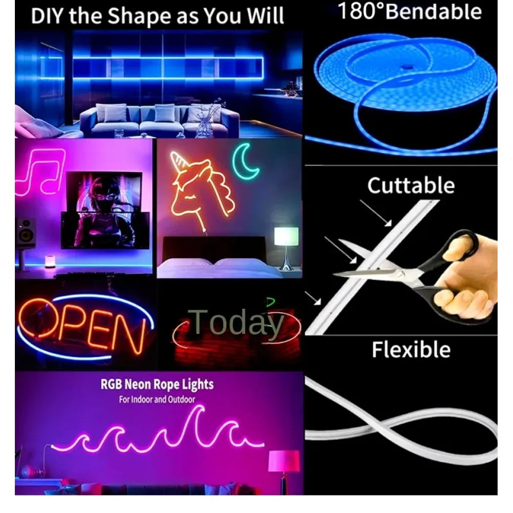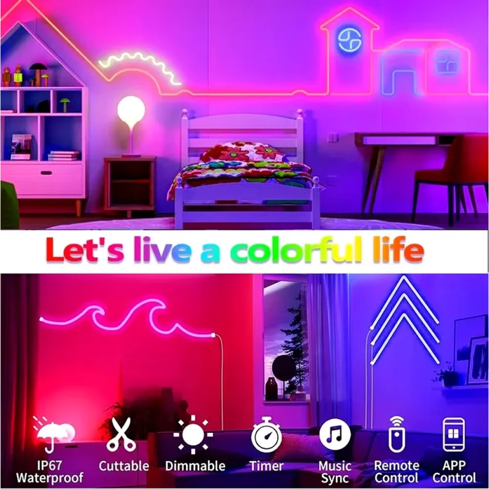 Неоновая LED лента Neon Strip · Неоновый RGB шнур с управлением от телефона · Светодиодная лента