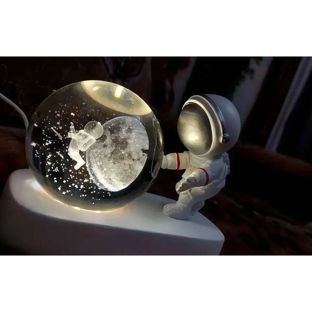 Ночник Космонавт с кристаллической сферой и LED-подсветкой • Декоративный ночник для детской и спальни