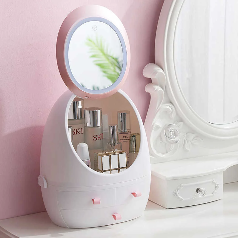 Приобретая Органайзер для косметики "Яйцо" с зеркалом с LED подсветкой Бокс для хранения косметики 35х28х18см для хранения вещей, Вы можете быть уверены в качестве!