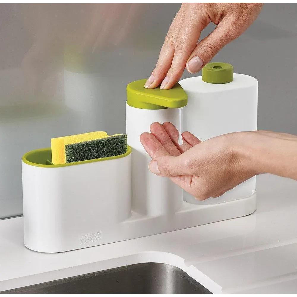 Органайзер для мойки с дозатором для мыла Sink Tidy Sey Plus 3 в 1 – очень компактный и удобный в использовании. Благодаря компактному дизайну данный органайзер может быть размещен даже на узкой стороне раковины. Теперь пространство за кухонной раковиной будет использоваться с максимальной эффективностью!