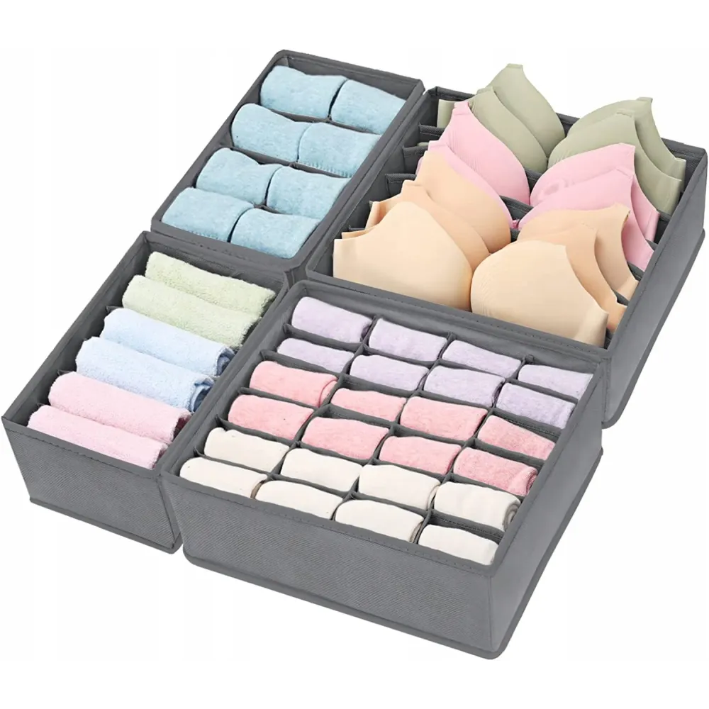 Набор из 4 органайзеров XL-1090 предназначен для удобного хранения нижнего белья и других мелких вещей в ящиках или шкафах. Складные органайзеры с отделениями позволяют легко находить нужные вещи и поддерживать порядок в гардеробе.