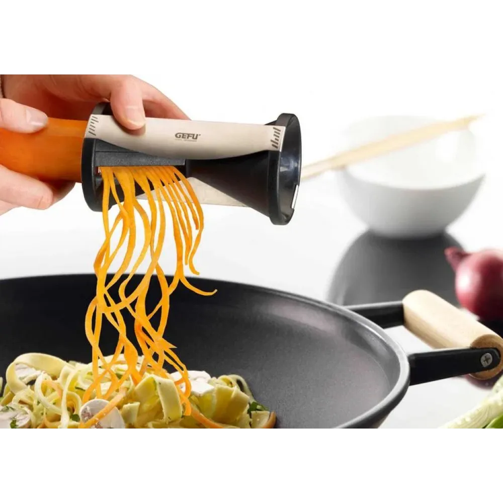 Spiral Slicer подходит для разных видов продуктов, с помощью овощерезки Вы можете получить бесконечные соломки моркови, редиса, огурцов и других твердых овощей. Также Можете выбрать размер соломки: 3 мм или 5 мм, которые идеально подойдут для создания блюд из пасты. Также нарезанные продукты отлично подходят для гарниров и украшения сервировочных блюд.