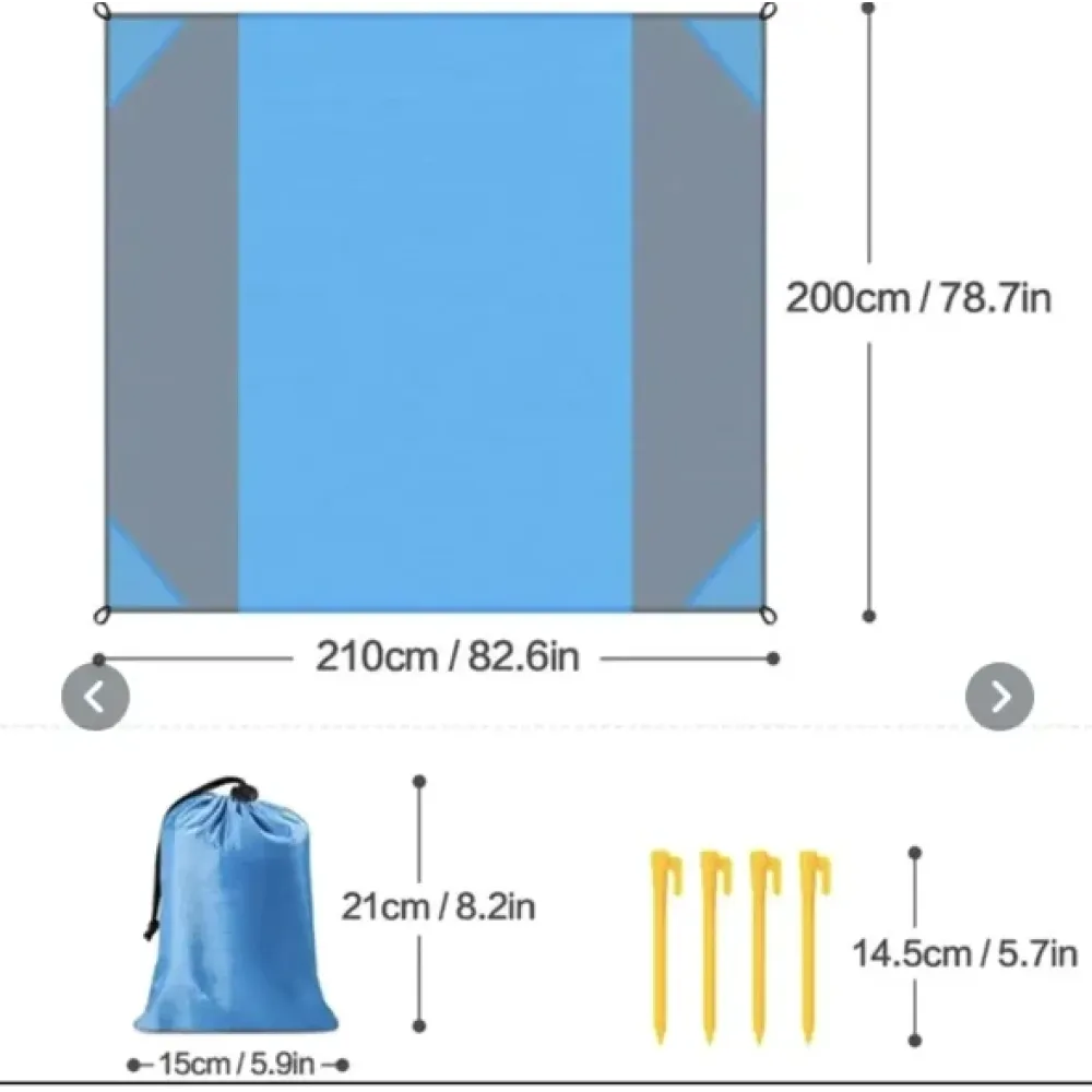 Пляжная подстилка 200х210 см · Складной коврик в чехле для пикника, кемпинга с колышками для фиксации в комплекте