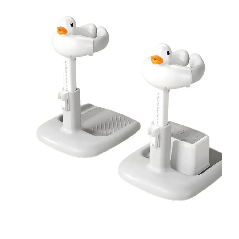 Благодаря регулируемой высоте (от 35 см до 55 см), противоскользящей силиконовой накладке и надежному основанию, подставка обеспечивает стабильность и удобство для родителей. Игровой элемент в виде утенка-пищалки добавляет веселое настроение во время купания, а раздвижная и компактная конструкция делает хранение простым и удобным.