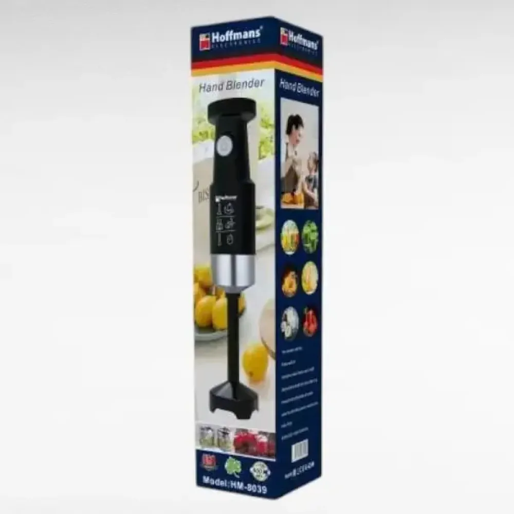 Hoffmans HM-8039 — удобный и практичный погружной блендер для дома. С мощностью 600 Вт он идеально подходит для приготовления коктейлей, смузи, соусов, кремов и детского пюре.