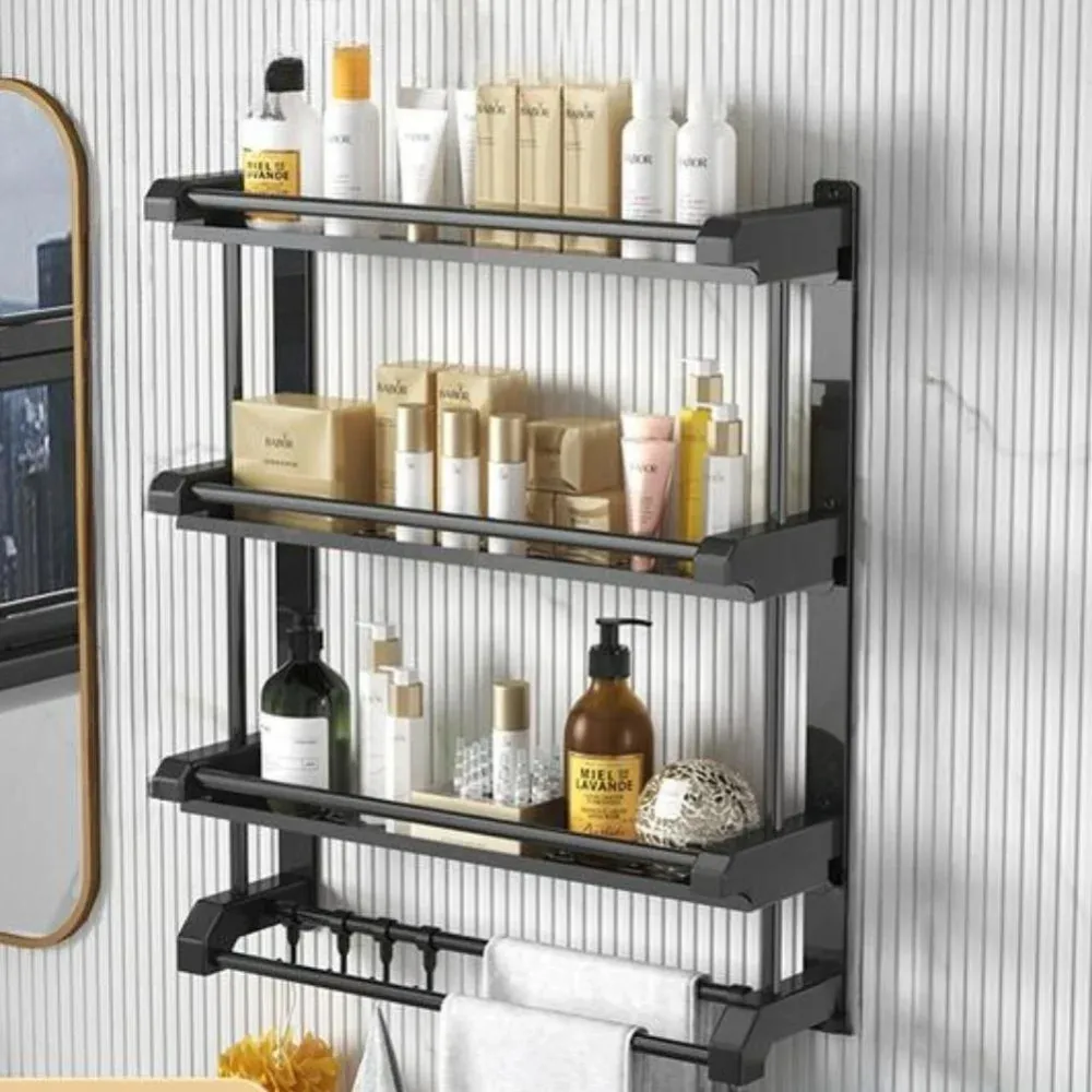 Создайте уют и порядок в вашей ванной комнате с нашей новой полкой для полотенец и аксессуаров! Элегантный черный дизайн и прочная металлическая конструкция обеспечивают сочетание стиля и практичности. Компактные размеры полки позволяют экономить ценное пространство, а продуманная конструкция обеспечивает удобное хранение всех необходимых вещей — полотенец, косметики, бытовых мелочей и банных принадлежностей.