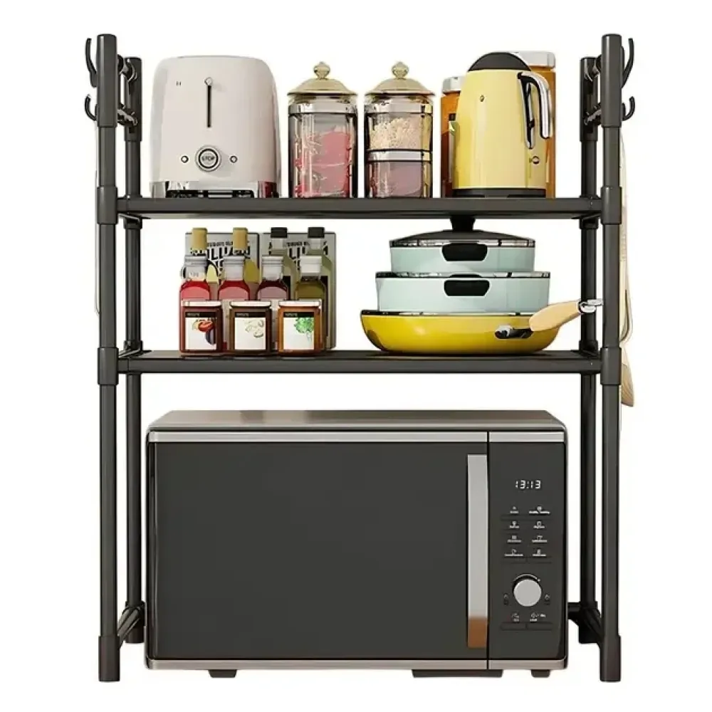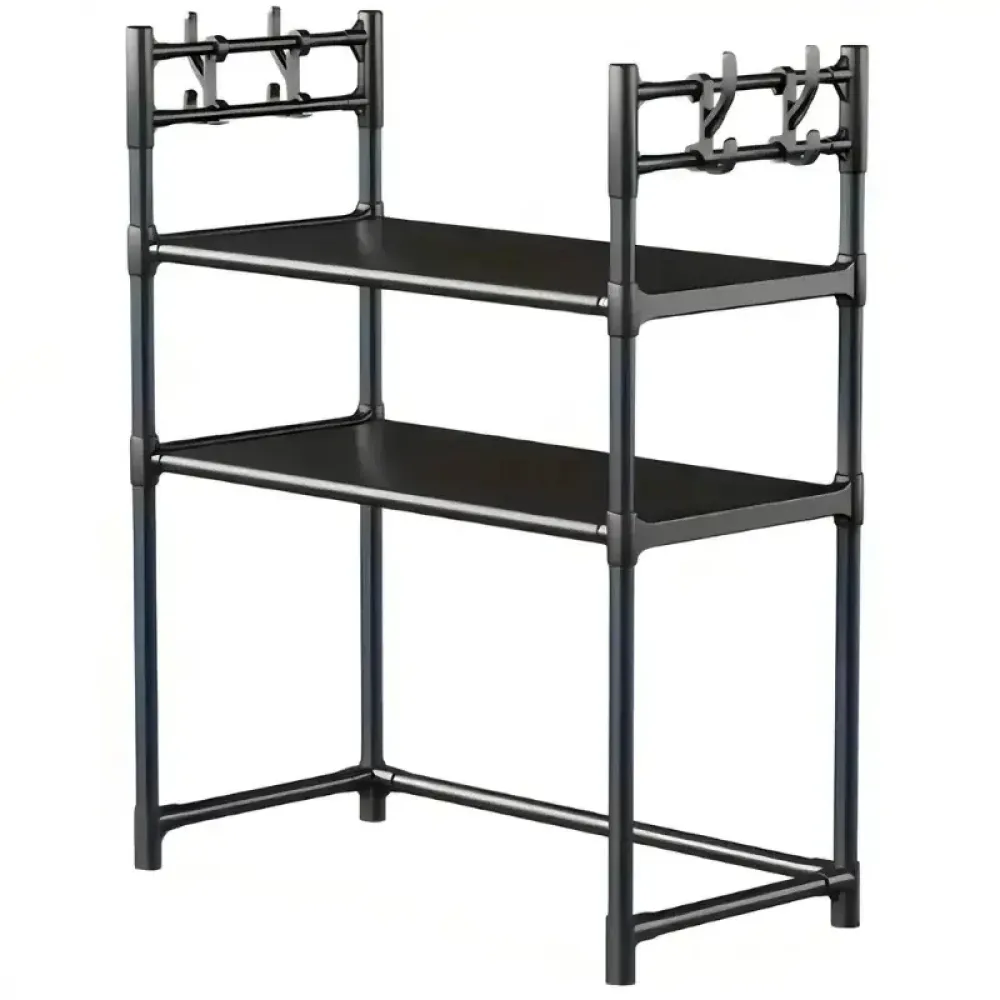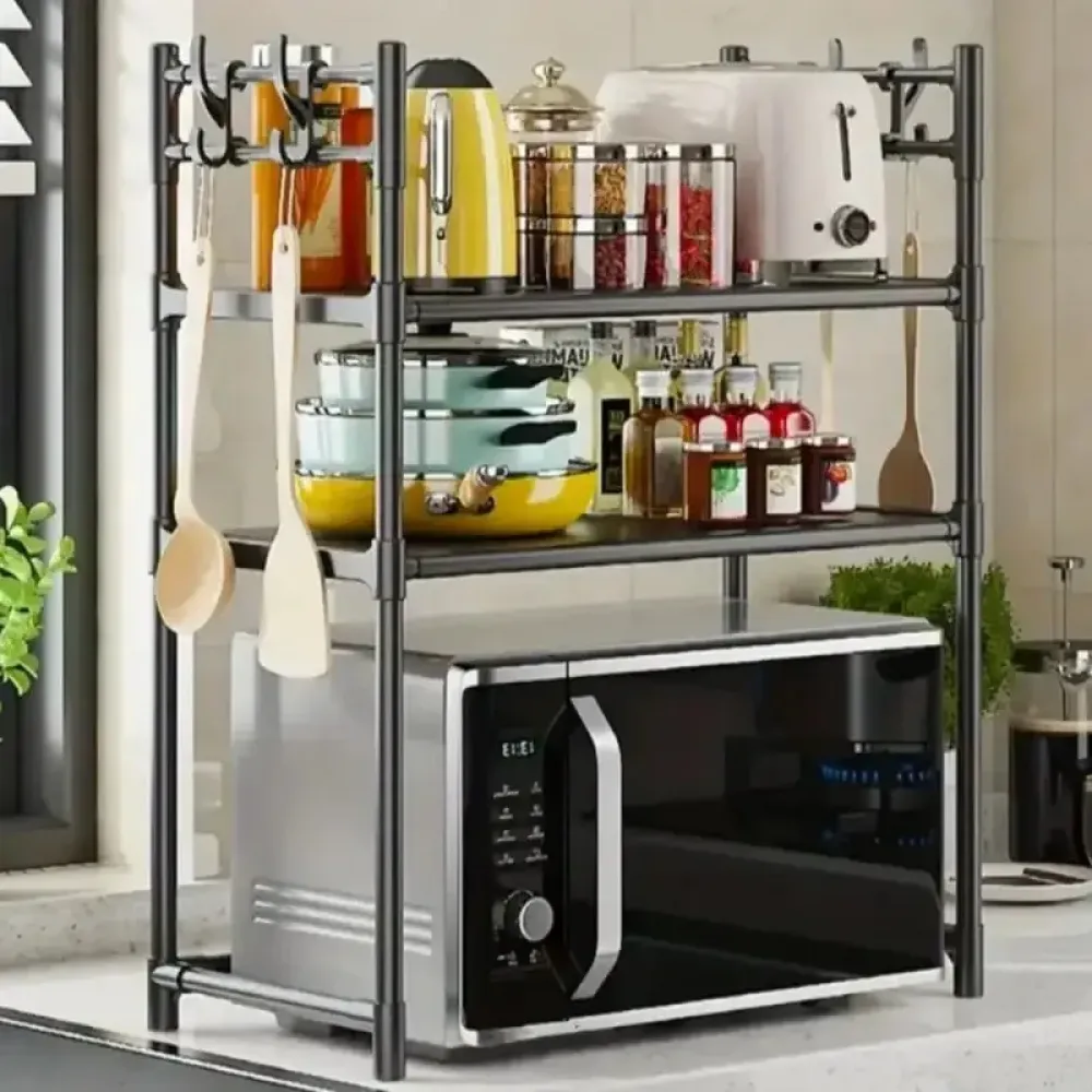 Полка Стеллаж для Микроволновки 3-ярусная • Кухонный органайзер с крючками