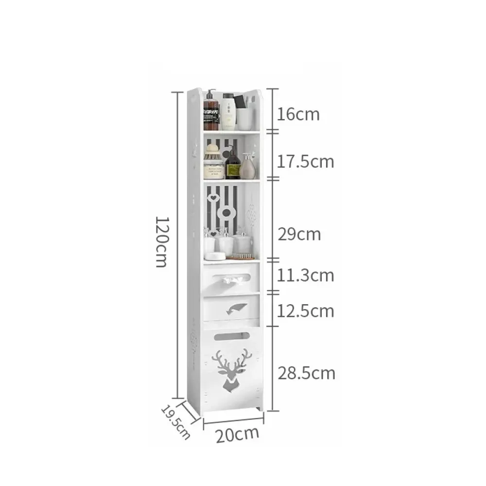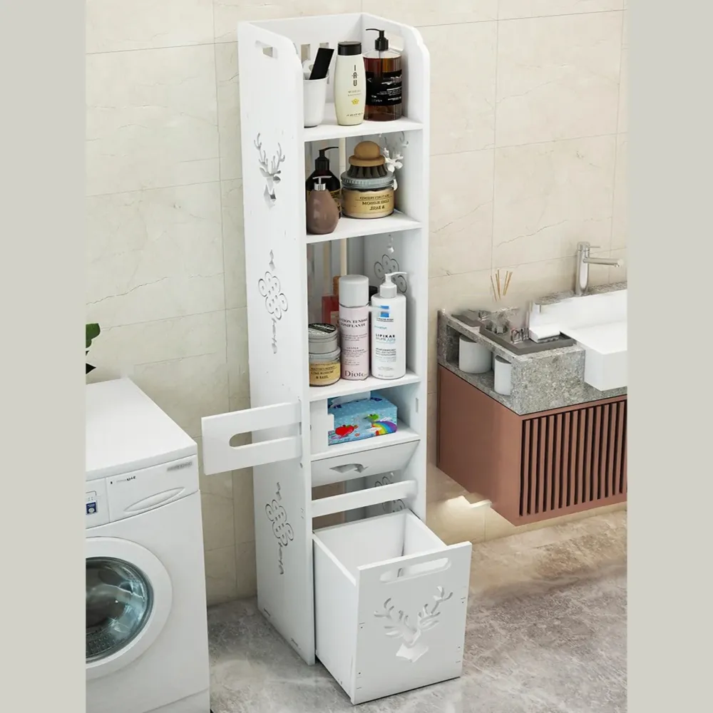 Полка-стеллаж для ванной комнаты PK-08 · Этажерка узкая для туалетный аксессуаров · Шкаф-пенал для ванной комнаты